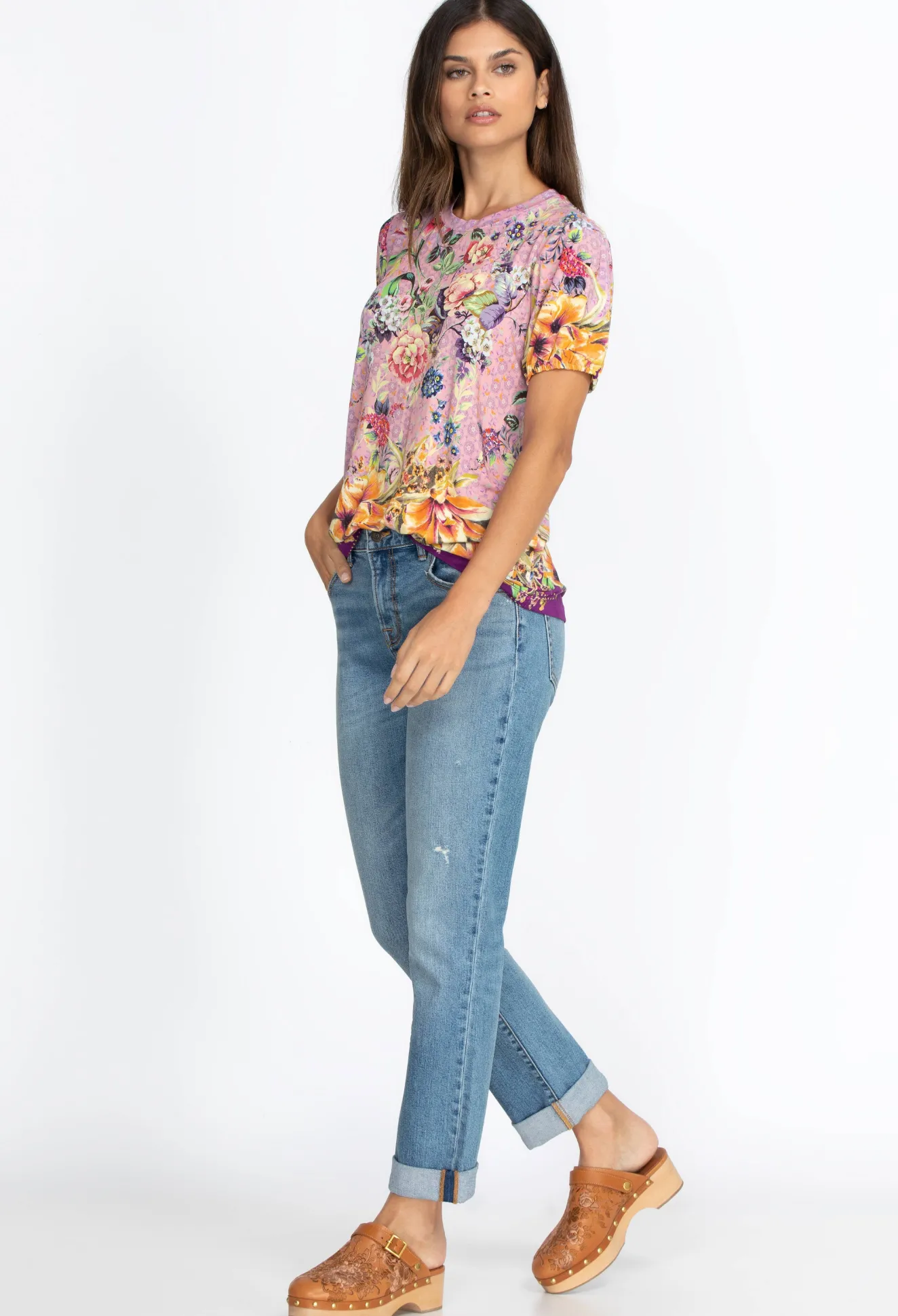Our Johnny Was Basic Boyfriend Jean will quickly become your favorite denim pant. Style with our classic tee shirts and a pair of flats for an easy everyday look.