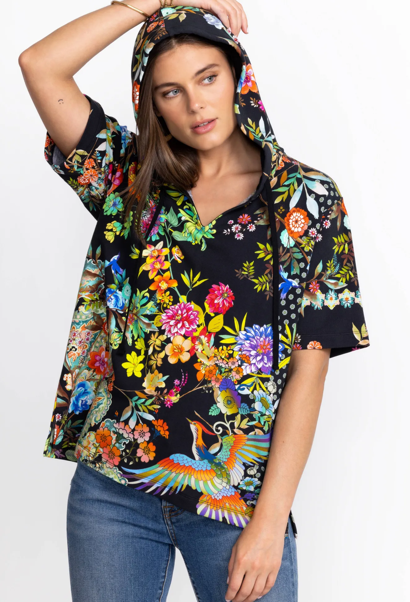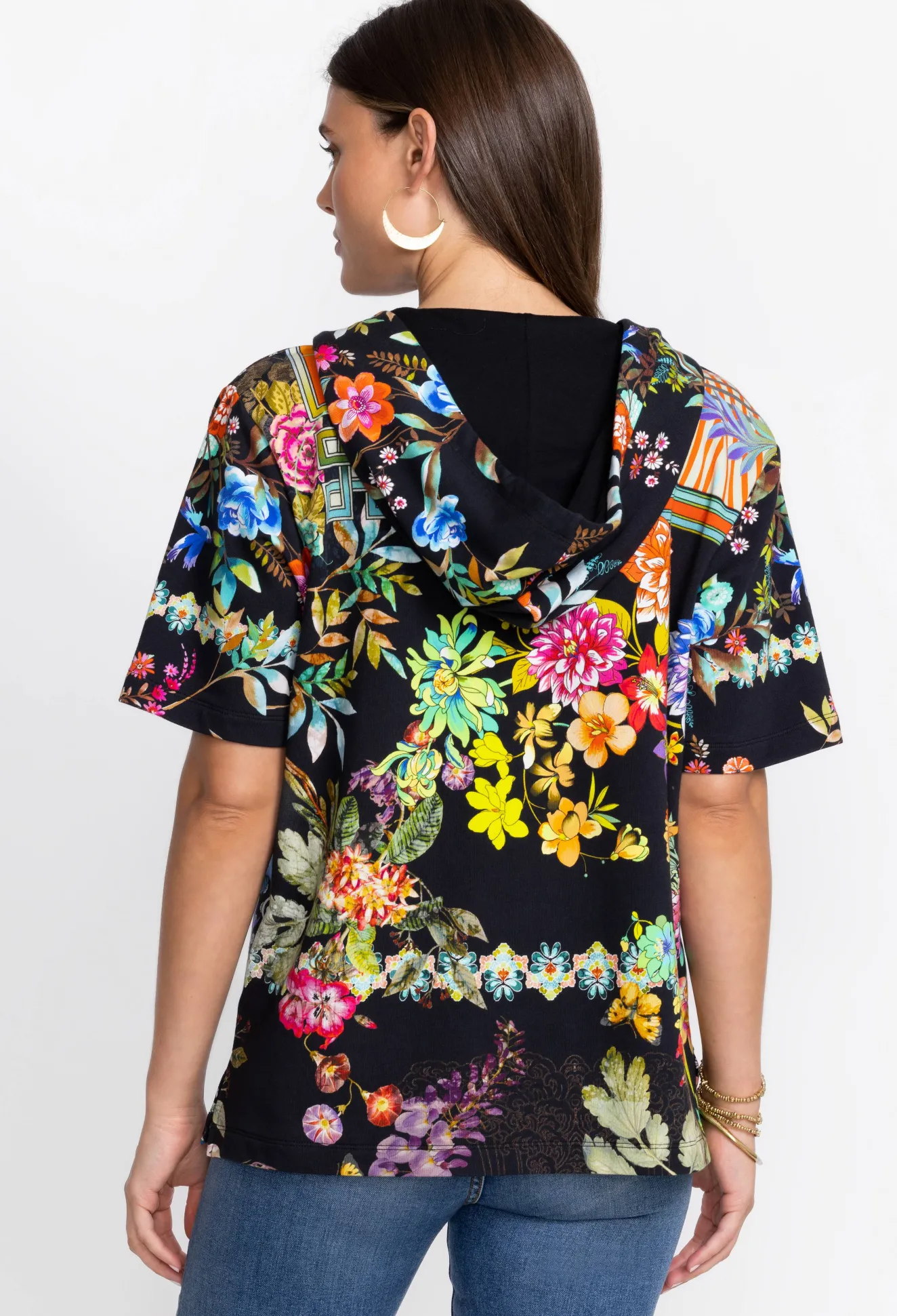 Women Johnny Was Black Dreamer Short Sleeve Notched Pullover Hoodie