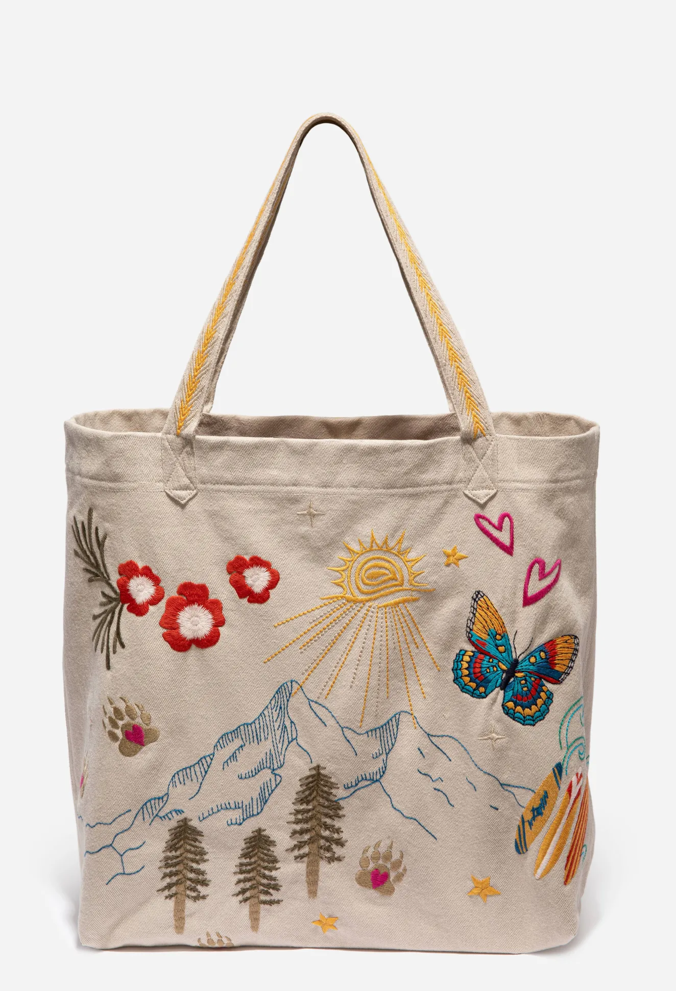 Made From Pure Cotton, The California Everyday Tote Effortlessly Encapsulates The Laid-Back Cali Vibe. This Tote Is Fabricated In A Lively Colorway And Is Defined By A Detailed Placement Embroidery, Depicting A Mix Of Both Natural And Urban Motifs That Echo California Landscapes. Finished With Two Top Handles And A Printed Lining, This Tote Can Be Used As A Beach Bag Or Styled With Denim And Leisurewear For A Laid-Back Travel-Ready Look.