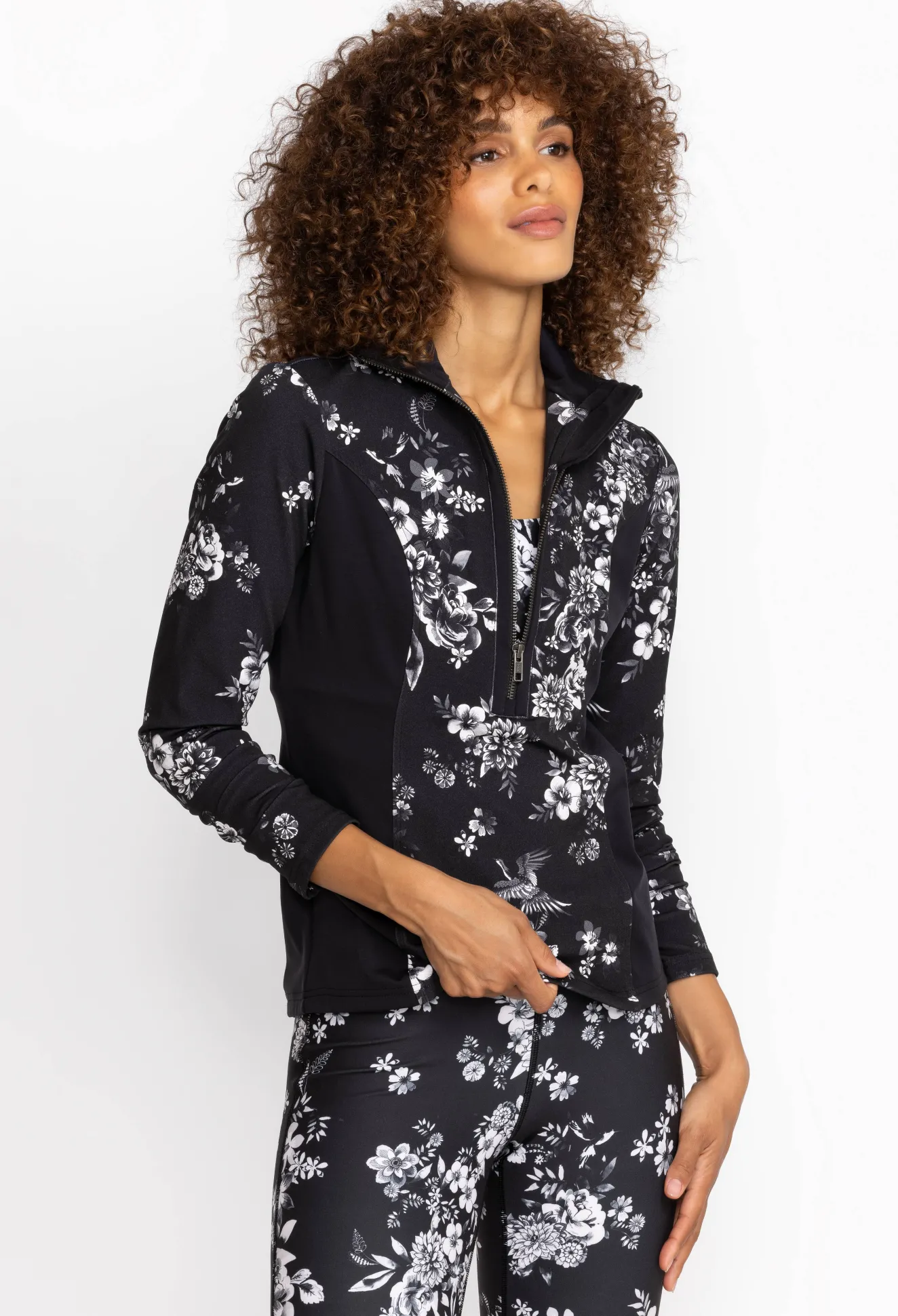 Crafted From A Lightweight Material With A Touch Of Stretch, The Dreamer Blocked Athletic Jacket Effortlessly Marries Two Styles. Merging A Sporty Aesthetic With A Feminine Feel, This Jacket Features A Mock Neck, A Half Zip Closure, Long Sleeves, And An Antique White Floral Print. Wear This Jacket With Jeans Or Dress Down With Joggers.