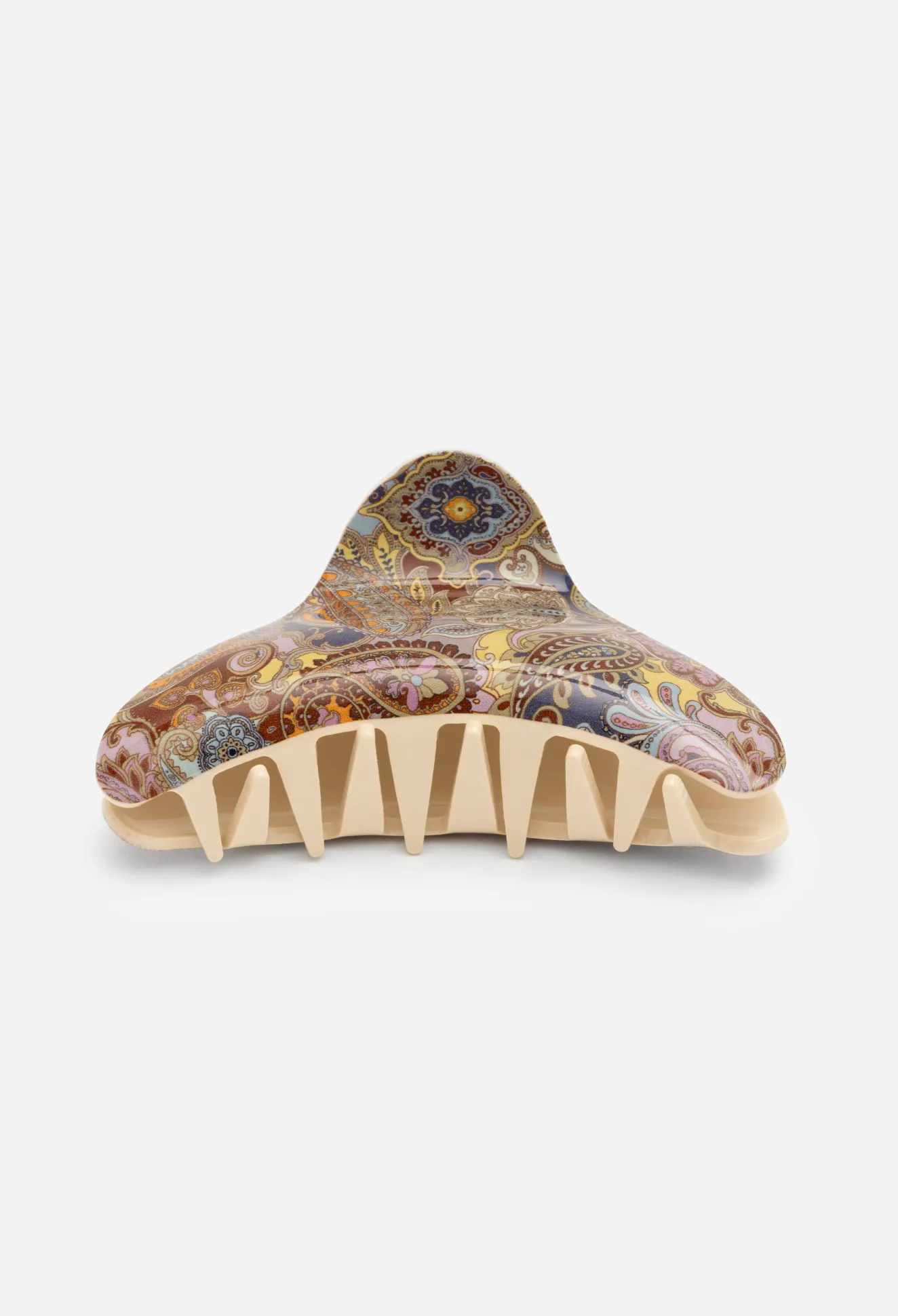 Redefine Your Everyday Looks With The Eye-Catching Sandalwood Hairclip. A Vintage Take On A Classic 90S Staple, This Hairclip Is Made From A Sturdy Fabric With Secure Claws And Is Further Characterized By A Detailed Floral Pattern For A Femme Finish. Style This Hairclip With Denim During The Day And Switch To Fluid Silk Pieces After Sunset.