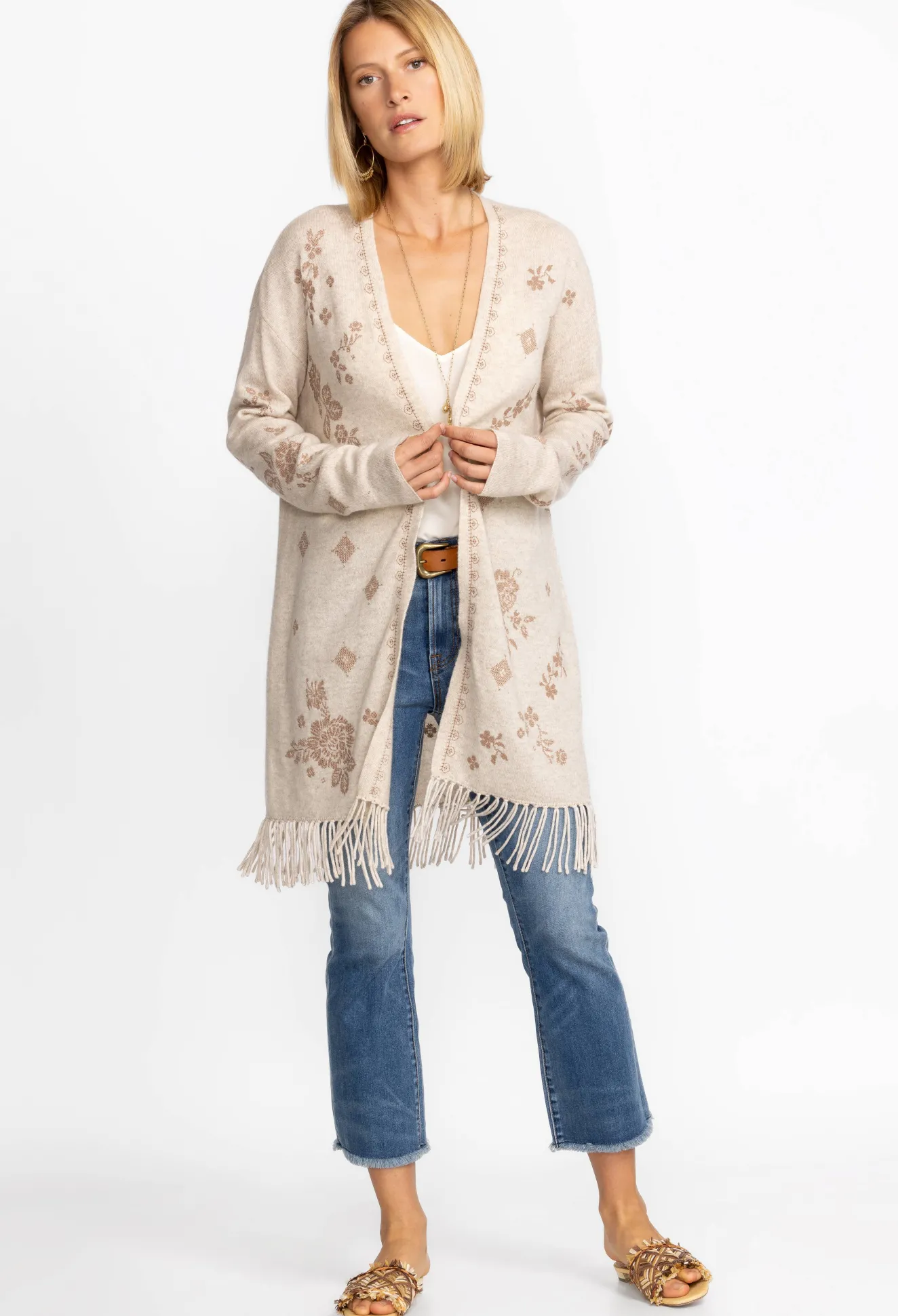 A Luxe Layering Option, The Joann Cardigan Is The Perfect Addition To Your Ensemble. Crafted From A Cozy Wool And Cashmere Blend, This Open Cardigan With Fringe Accents Serves Up Delicate Placement Embroidery In A Versatile Wardrobe Piece. Layer Over A Jeans And Tee Or A Classic Little Black Dress For Versatile Pairing Options.