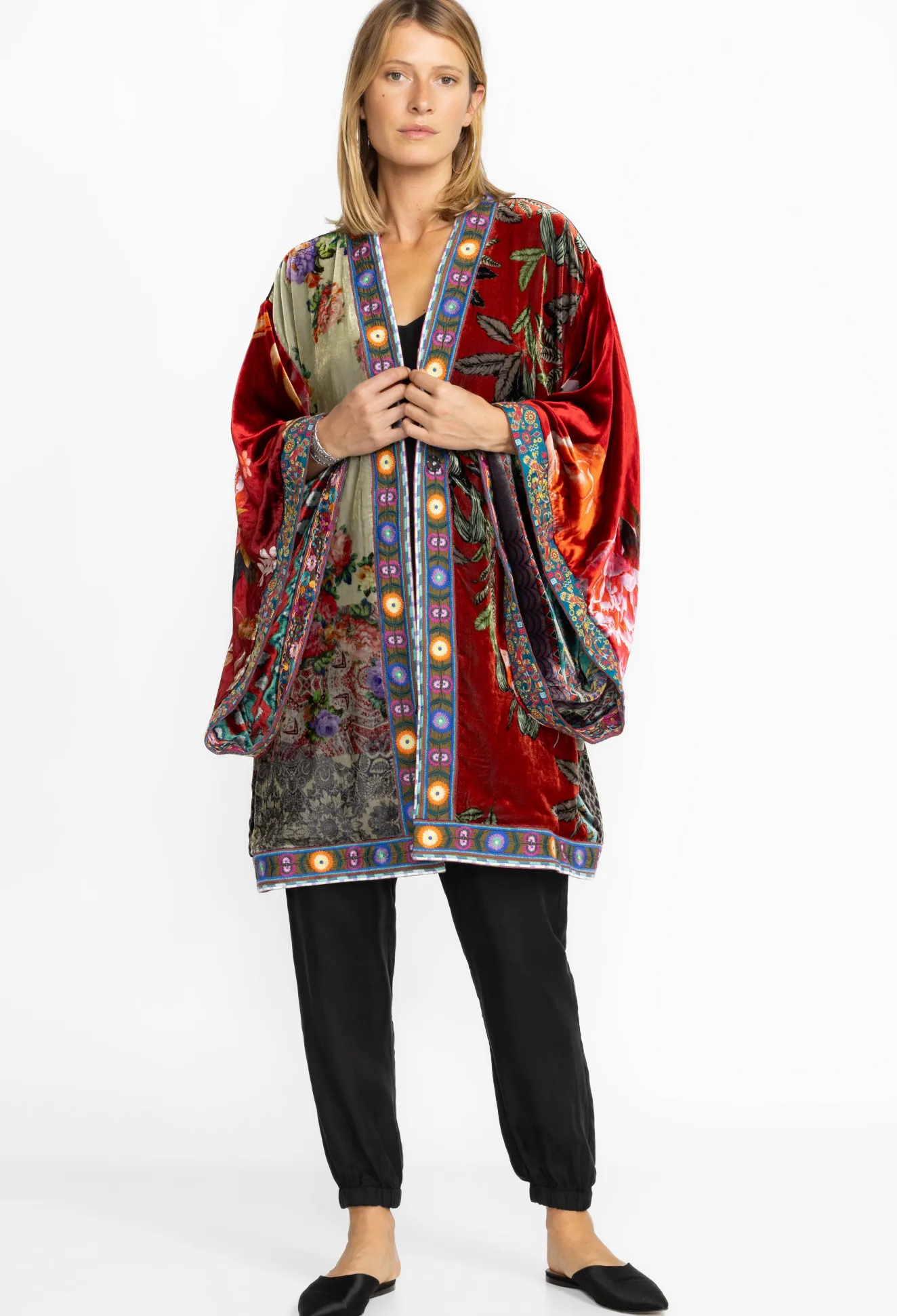 Women Johnny Was Midi One Of A Kind Velvet Kimono- Red