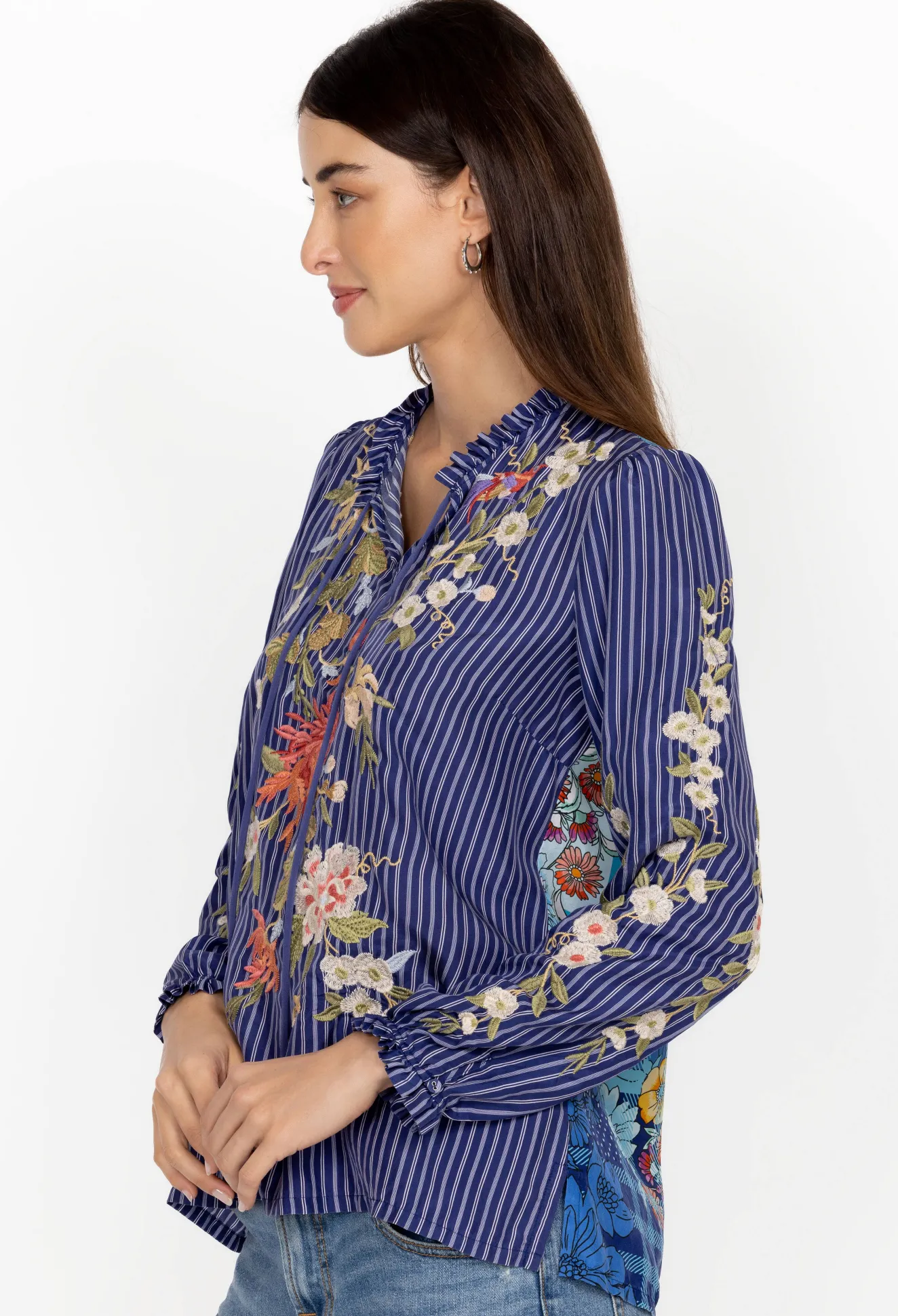 Women Johnny Was Nalina Ruffle Scarf Back Blouse