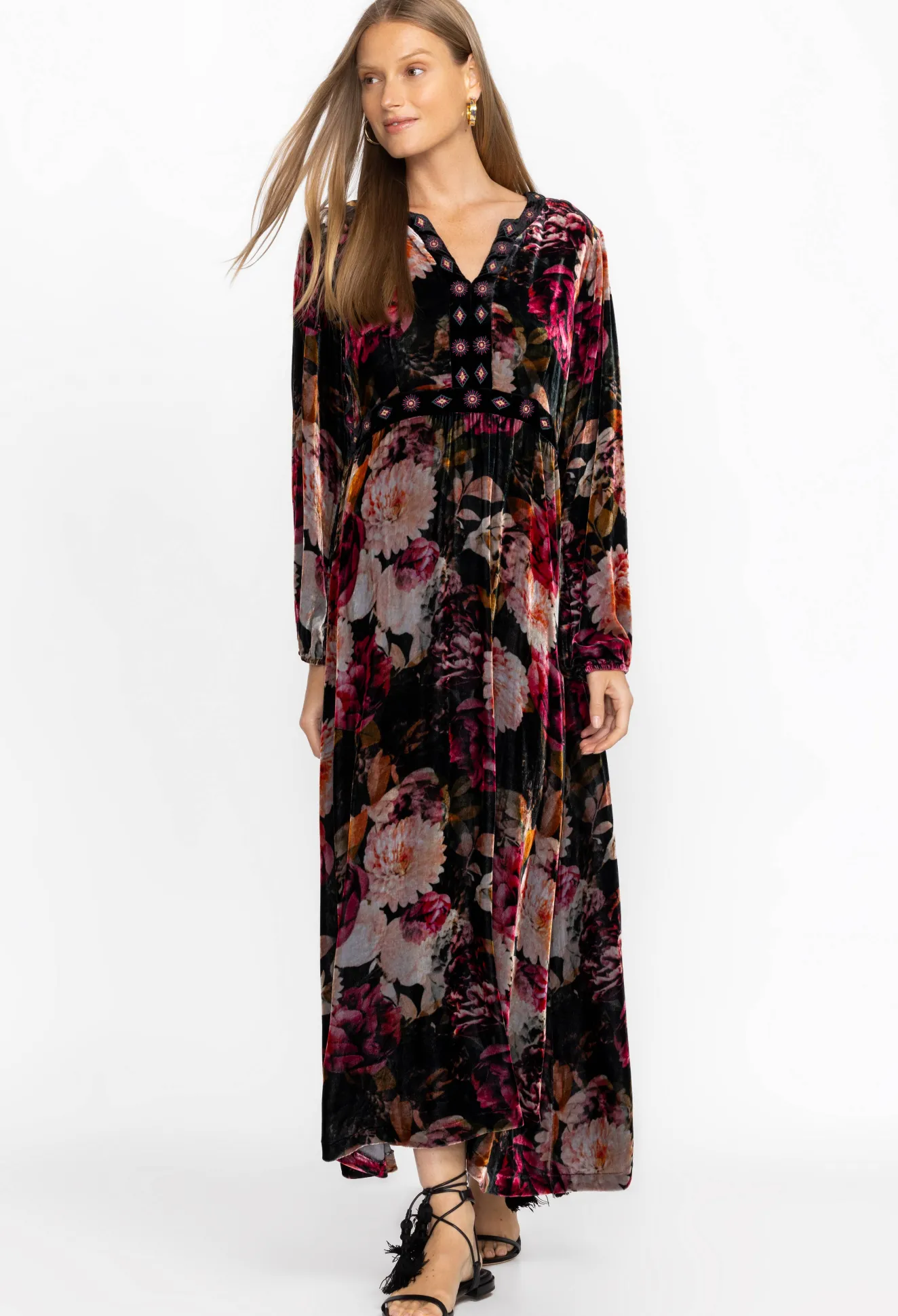 Women Johnny Was Rosa Velvet Front Notch Dress