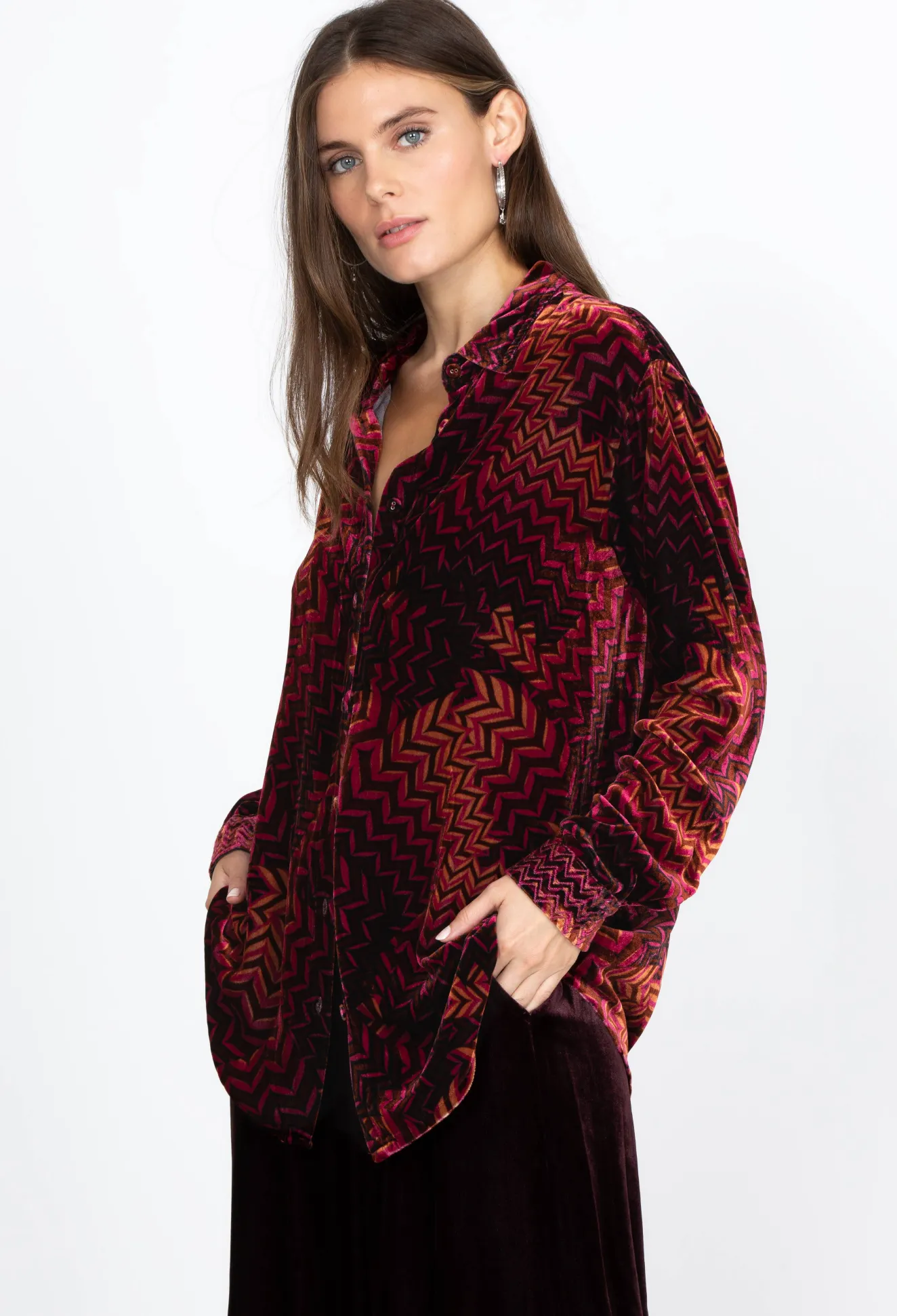 Women Johnny Was Velvet Oversized Shirt