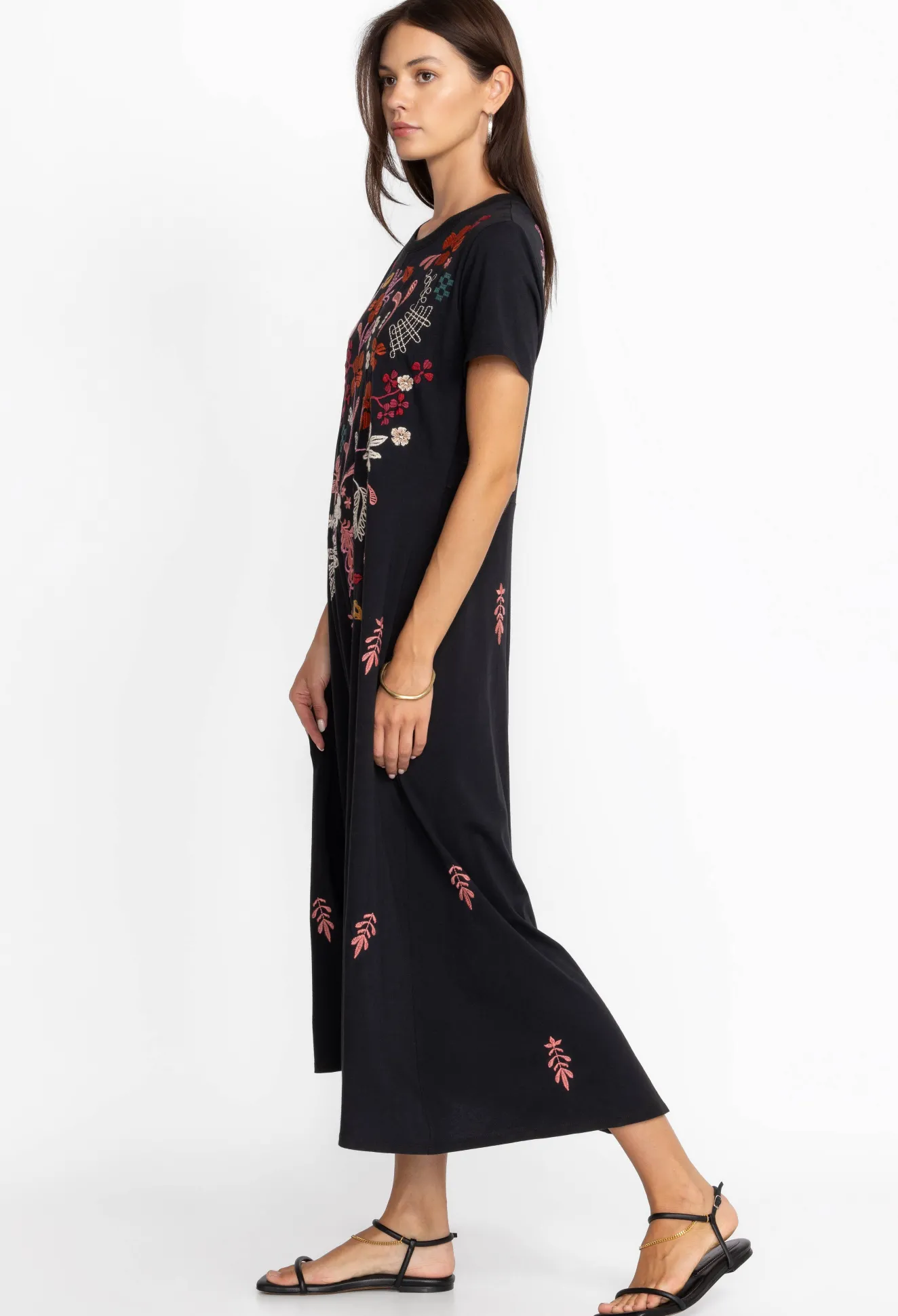 Imagined In Jet Black, The Zuzu Knit T-Shirt Dress Elevates A Versatile Cut With Joyful Blooms. Knitted From Pure Cotton, This Dress Boasts A Round Neck, Short Sleeves, And An Intricate Floral Placement Embroidery In Bright Tones. Modernize The Look With Sneakers Or Opt For A Femme Finish By Pairing With Sandals.