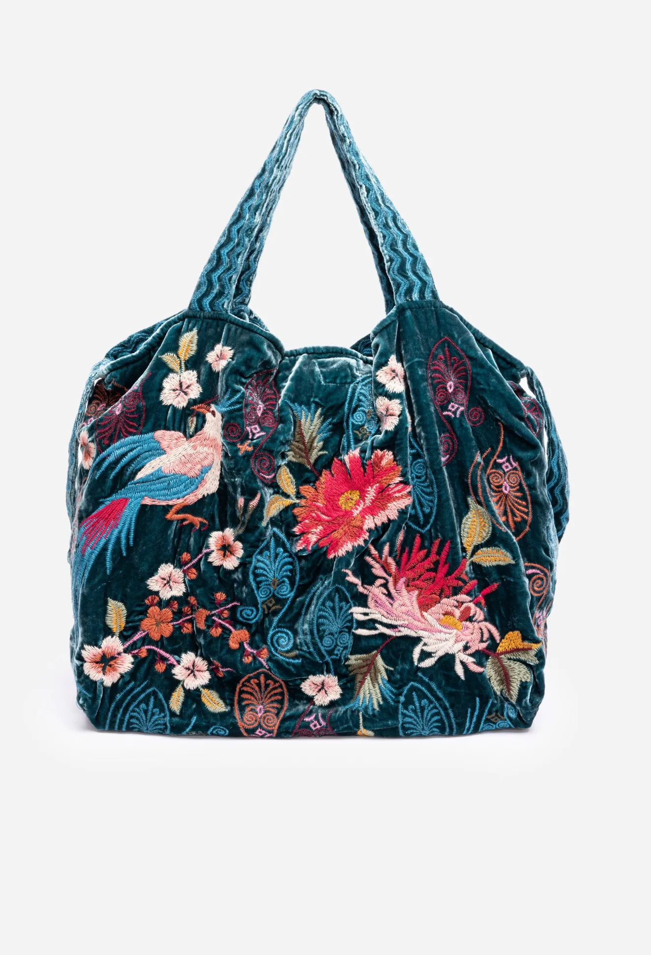 Presenting Carefully Designed Placement Embroidery On A Rich Backdrop, The Ashira Velvet Tote Bag Is Perfect For Work Or Play. Crafted From A Luxe Silk Blend Fabric And Featuring A Durable Magnetic Closure, This Everyday Tote Is Perfect For An Afternoon Of Errands, Or A Day In The Office. Team With Mom Jeans And A Crisp Button Down For A Fresh Daily Look.