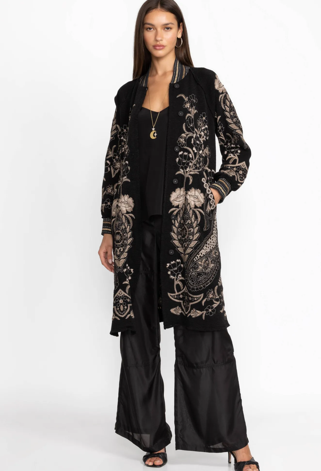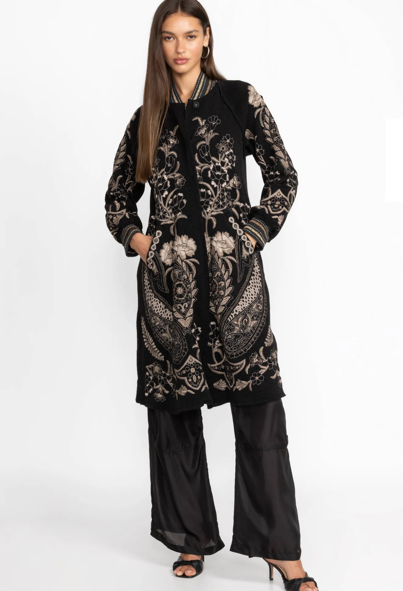 Adding A Touch Of Drama To Your Outerwear, The Leon Jacket Is A Beautifully Unique Layering Choice. Featuring A Snap-Button Front And Incredibly Detailed Embroidered Patterns, This Jacket Is A Stunning Conversation Piece That Is Easy To Wear. Layer Over A Little Black Dress And Glittering Heels For A Chic Night Out.