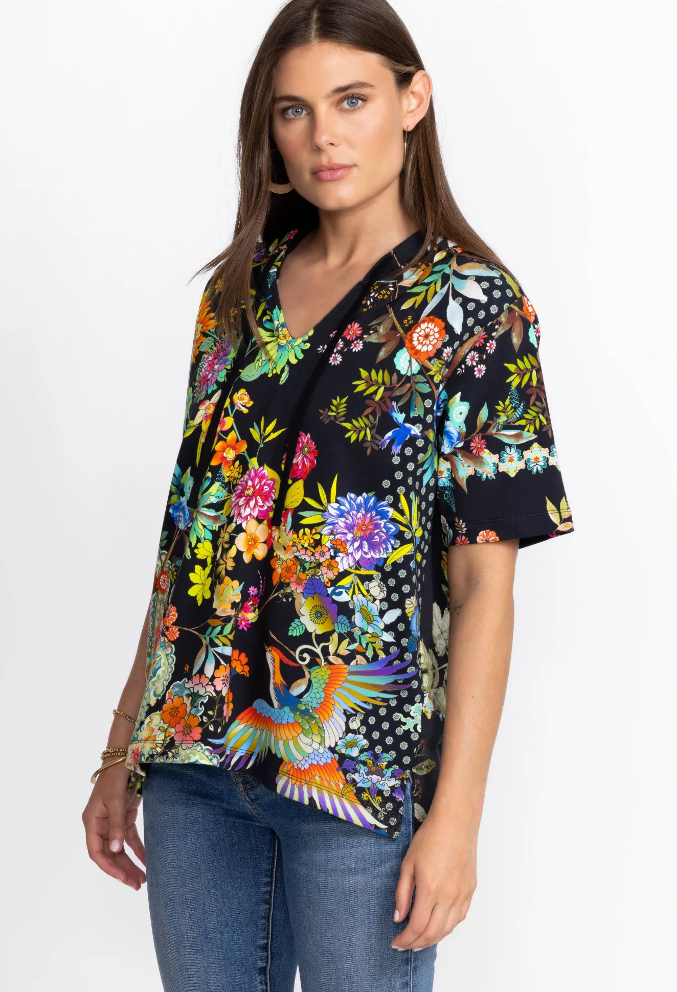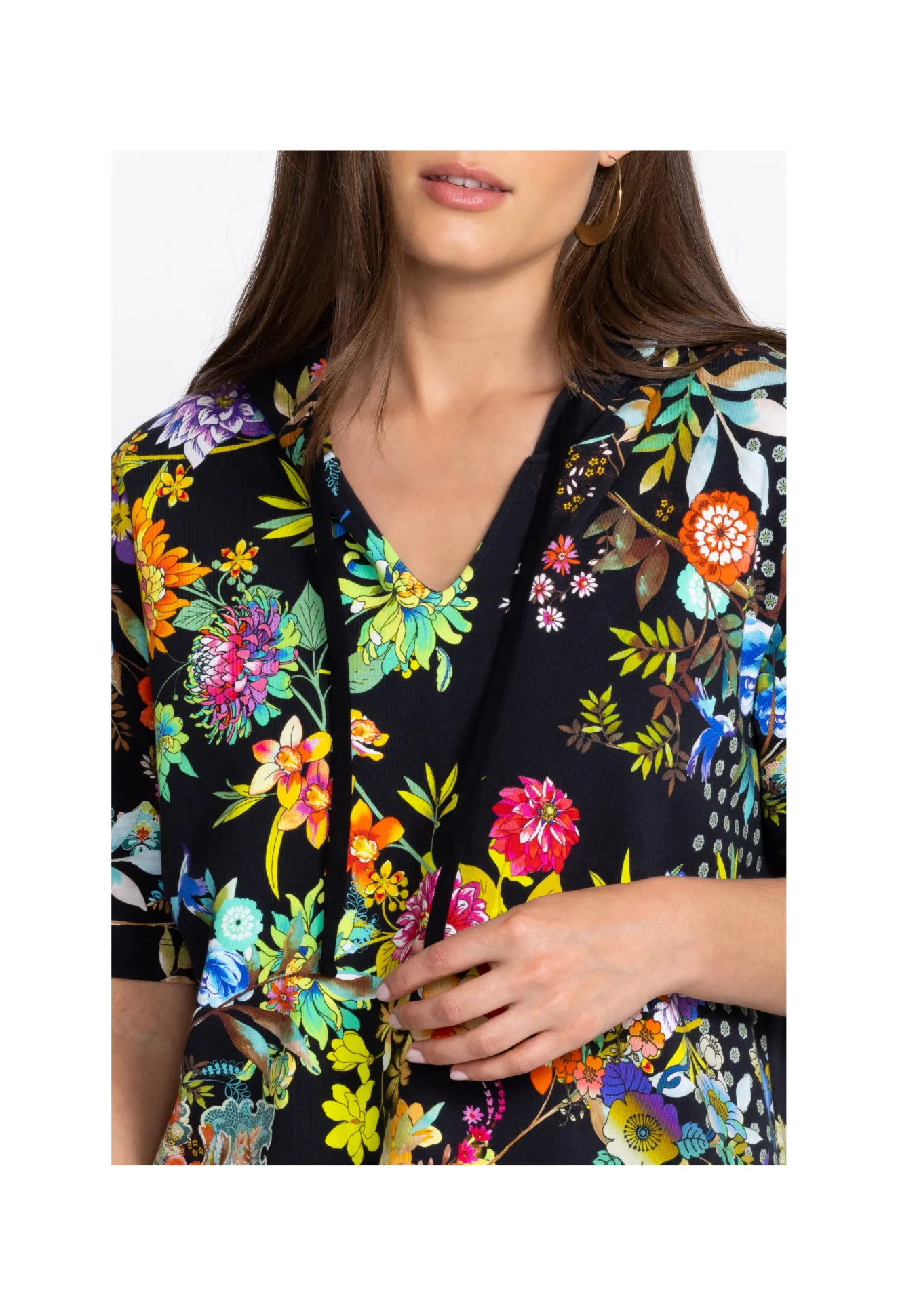 Women Johnny Was Black Dreamer Short Sleeve Notched Pullover Hoodie