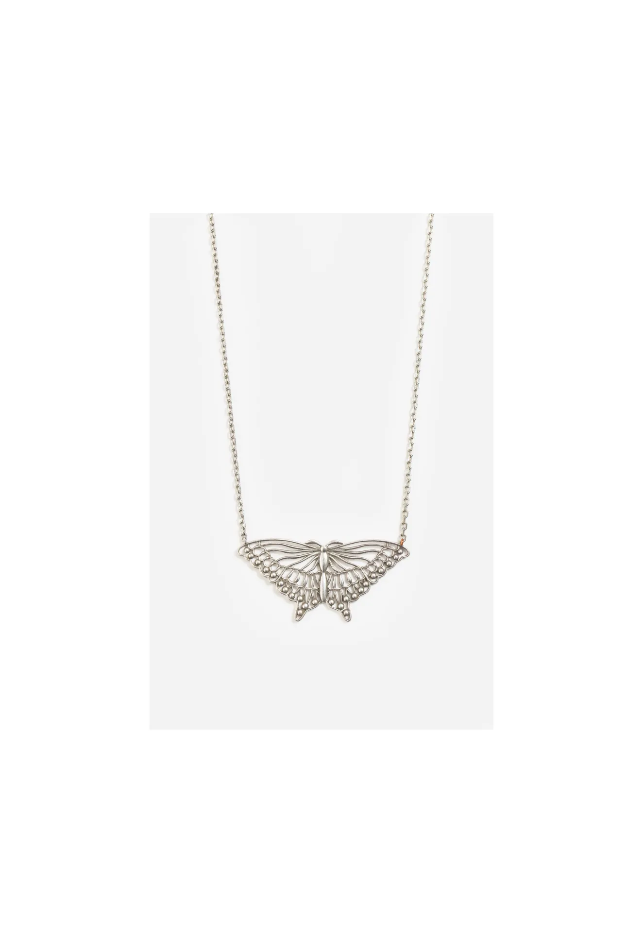 The Butterfly Necklace Pairs A Passion For Detail With A Whimsical Charm, Creating A Bold Statement Made For Warm-Weather Dressing. Crafted From Durable Silver-Tone Brass, This Timeless Necklace Features A Dainty Chain Complete With A Fluttering Butterfly Pendant At The Center. Style This Necklace With A V-Neck Blouse And Wide-Leg Pants For A Sophisticated Day-To-Night Transition.