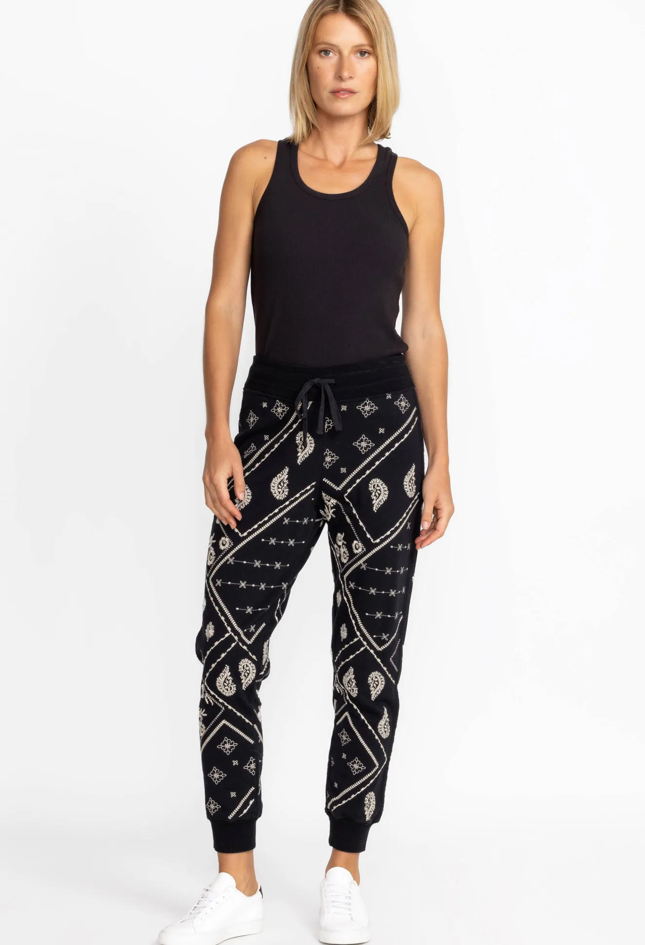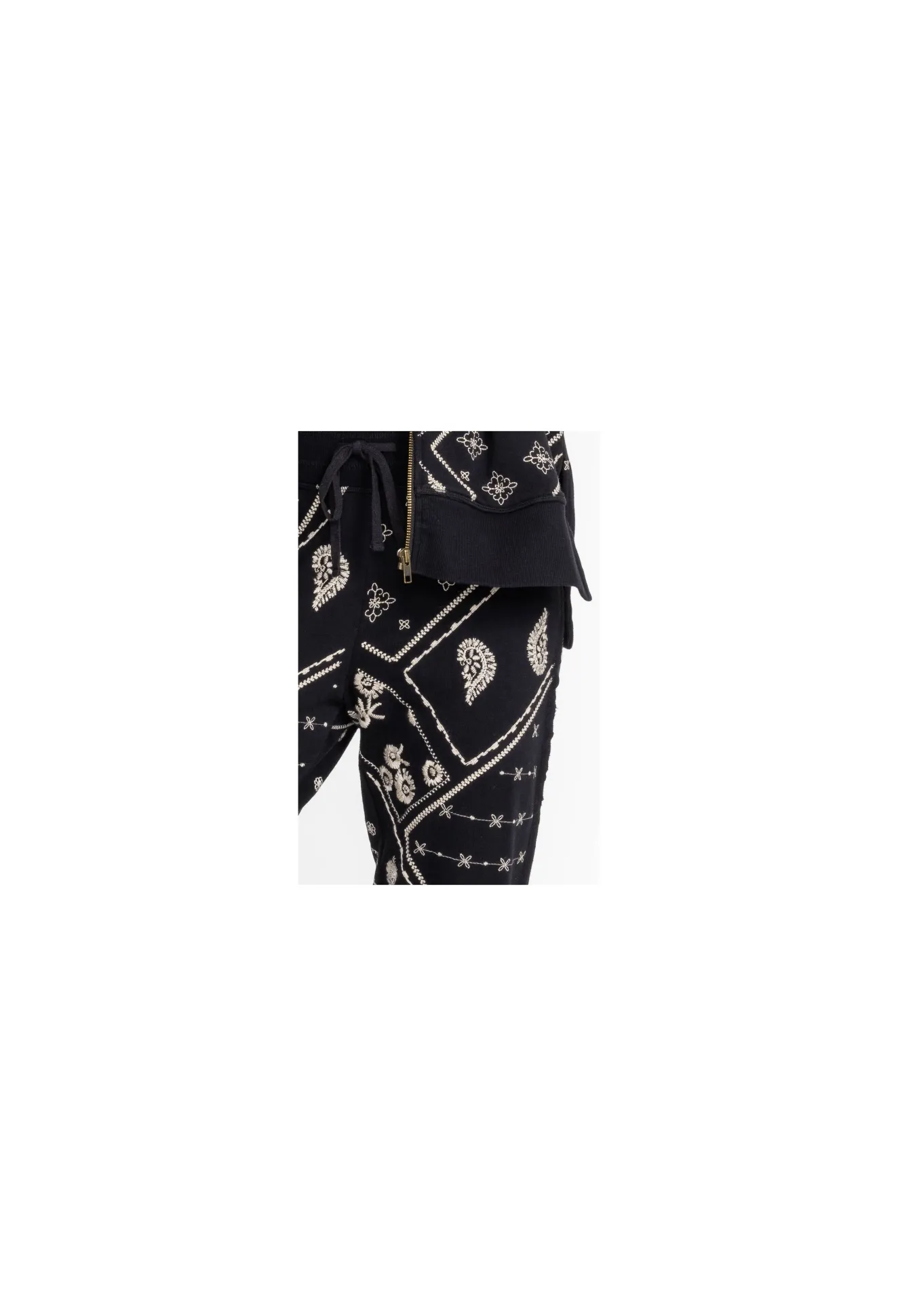 Relax In Style With The Devi Raw Seam Jogger. Crafted From Breathable 100% Cotton, These Cozy Joggers Display Intricate Placement Embroidery And Feature An Easy Elastic Waist And Cuffed Ankles For A Comfortable Fit. Create A Posh Casual Look By Pairing With Your Favorite Tee And The Devi Raw Seam Zip Up.