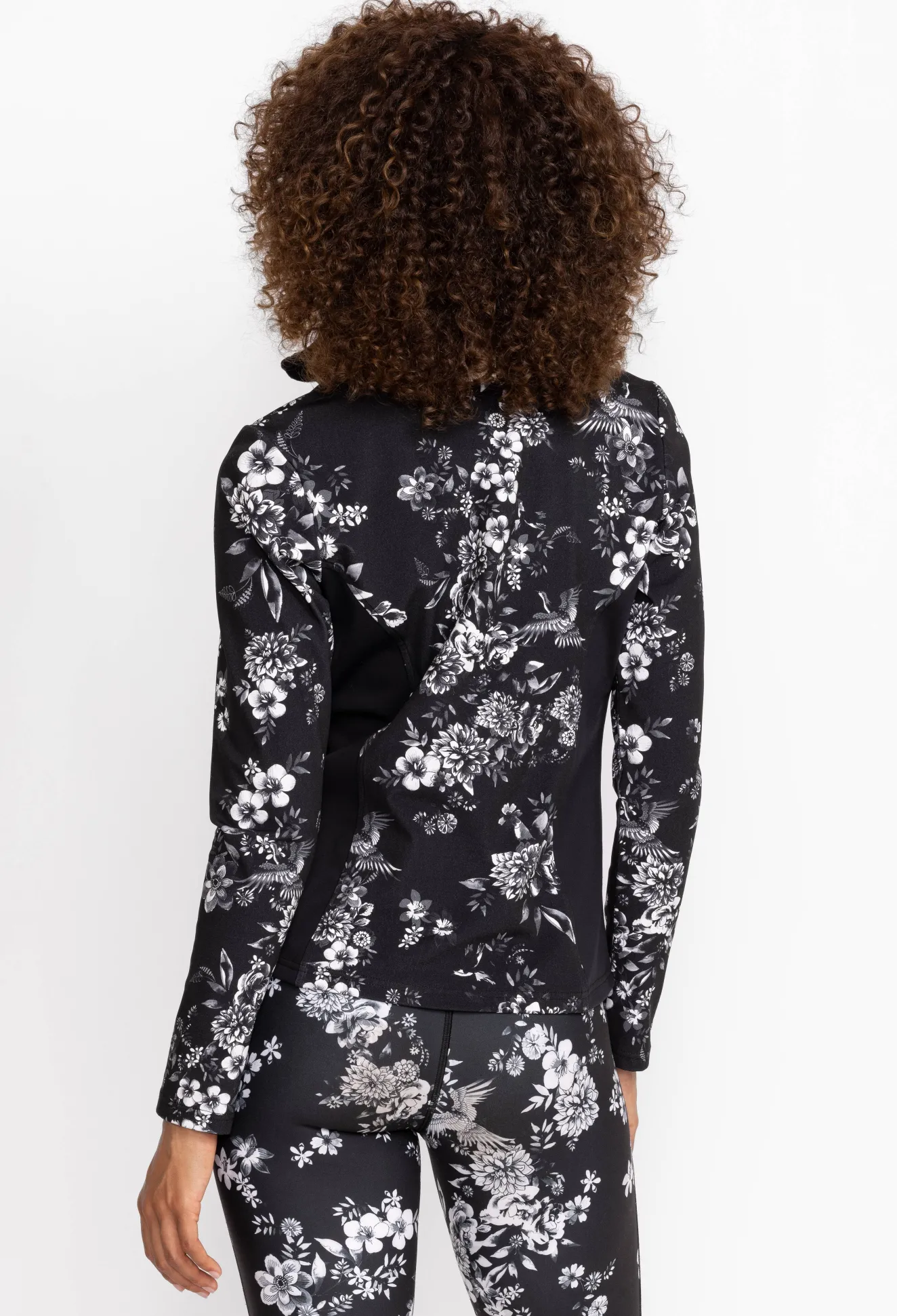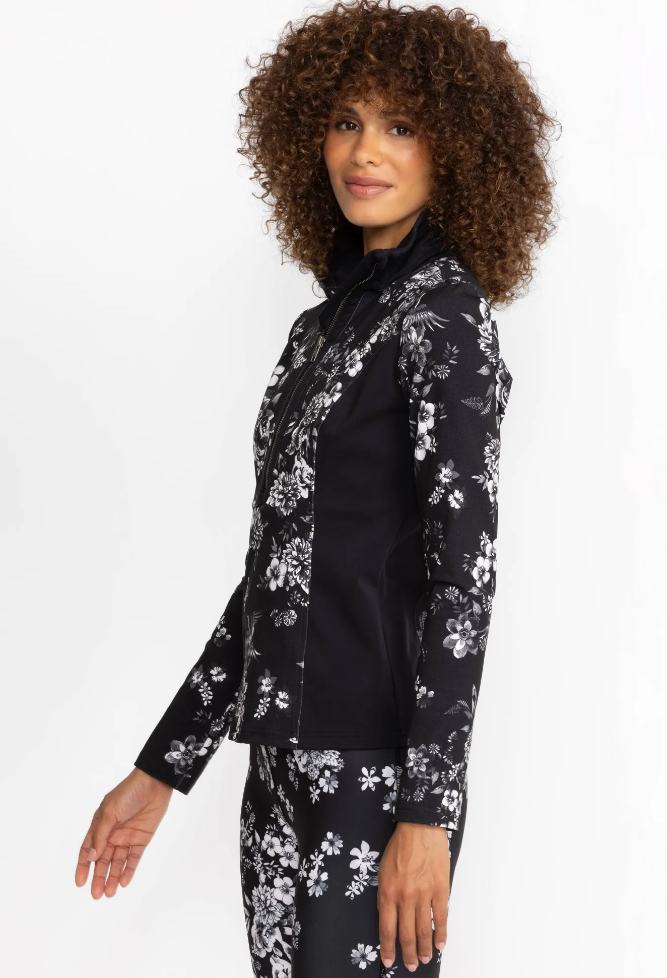 Crafted From A Lightweight Material With A Touch Of Stretch, The Dreamer Blocked Athletic Jacket Effortlessly Marries Two Styles. Merging A Sporty Aesthetic With A Feminine Feel, This Jacket Features A Mock Neck, A Half Zip Closure, Long Sleeves, And An Antique White Floral Print. Wear This Jacket With Jeans Or Dress Down With Joggers.