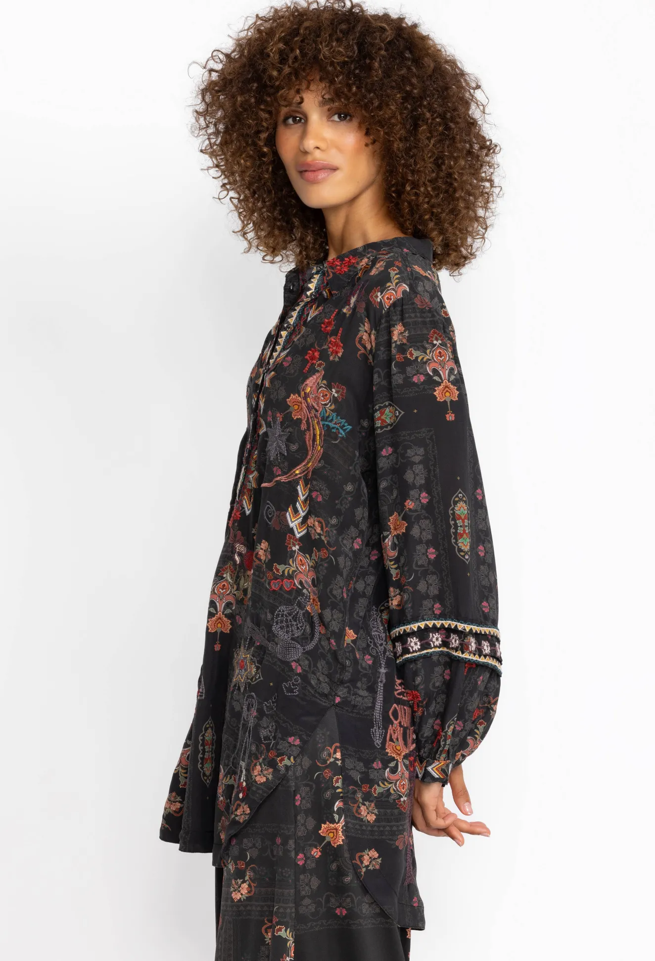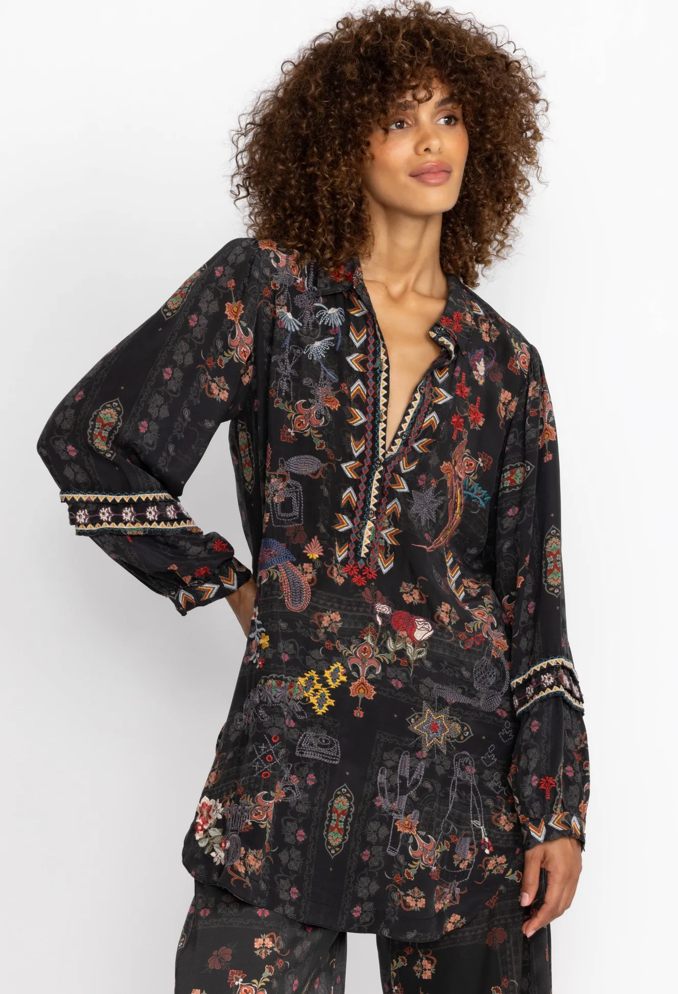 Crafted From 100% Sumptuous Silk, The Aggie Tunic Top Is An Exercise In Intricate Elegance. Ornately Detailed With Burst…