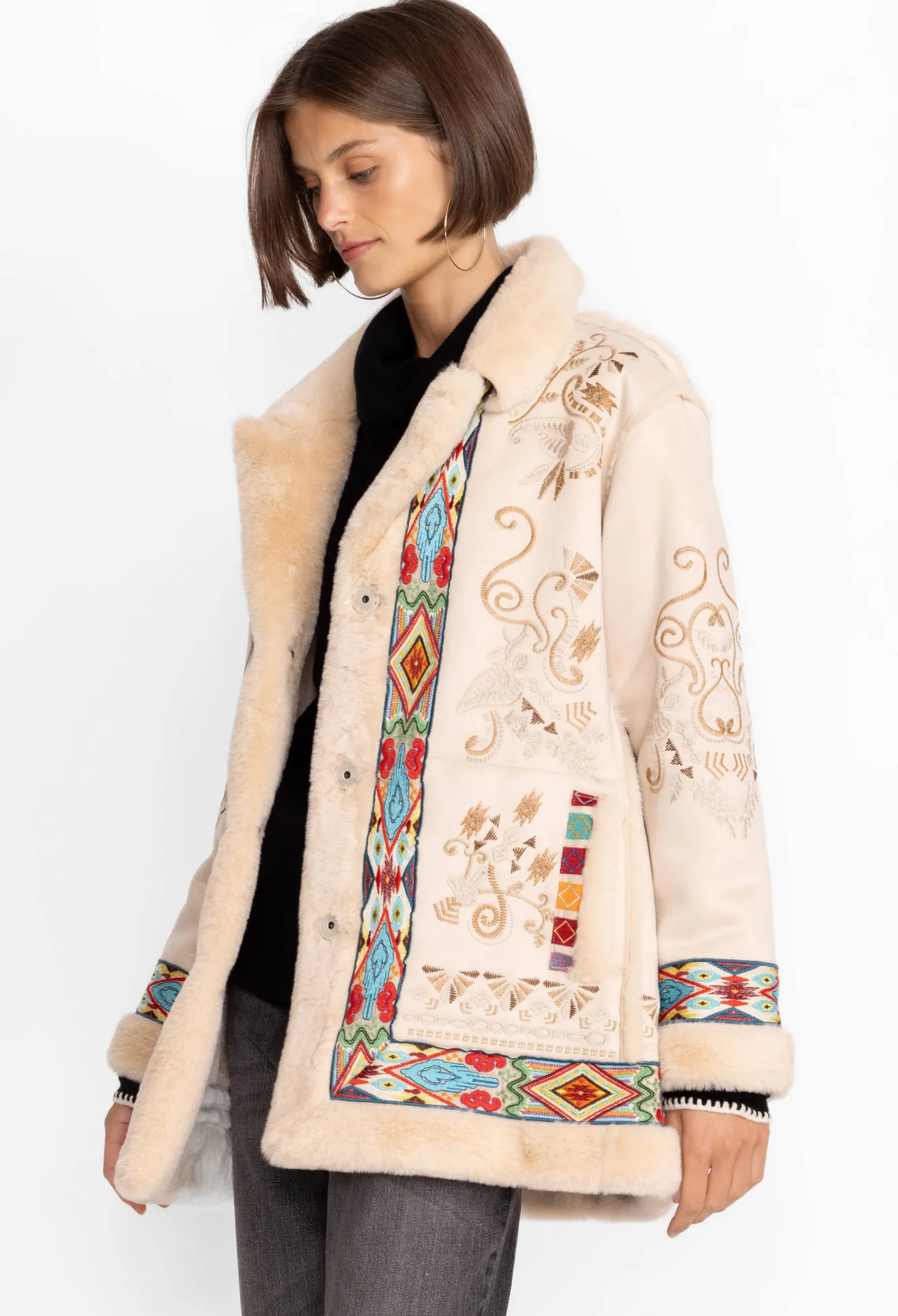 Women Johnny Was Hepburn Ski Fur Coat