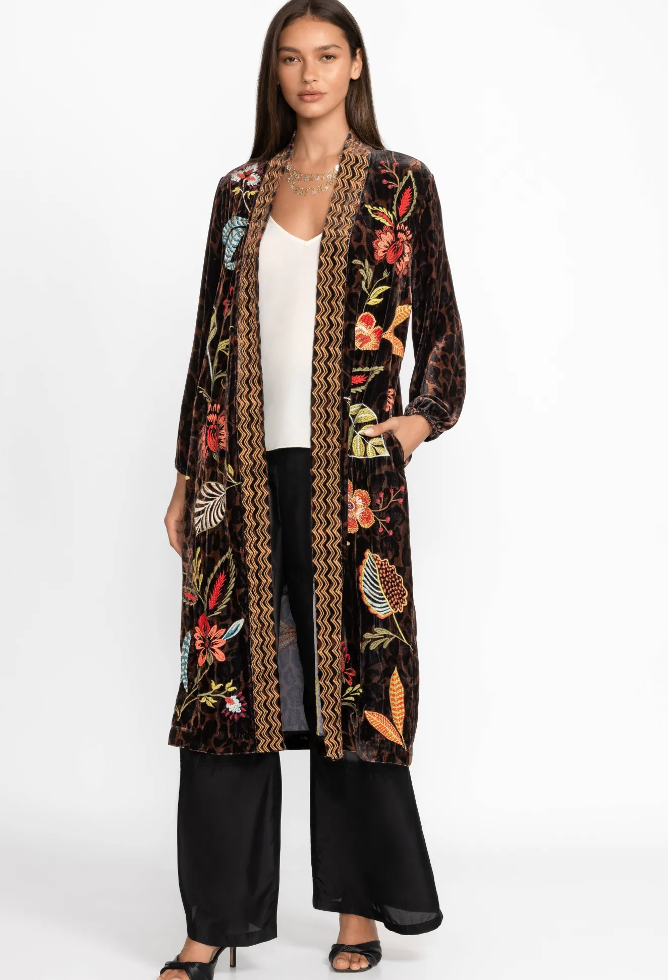 Women Johnny Was Isabella Velvet Bishop Sleeve Kimono Coat