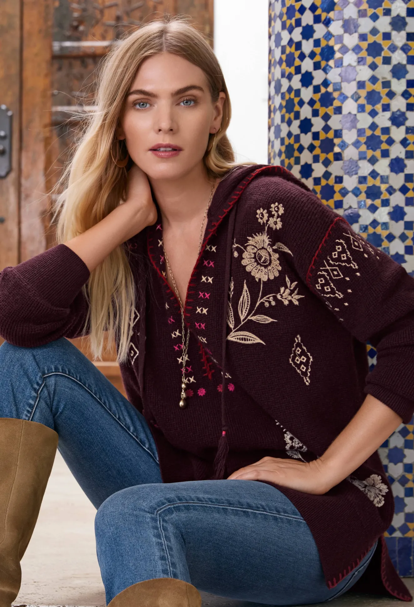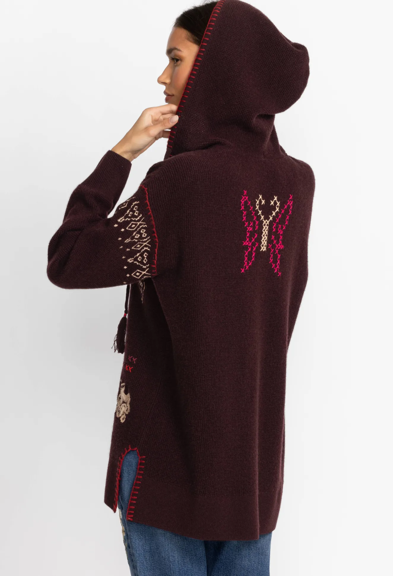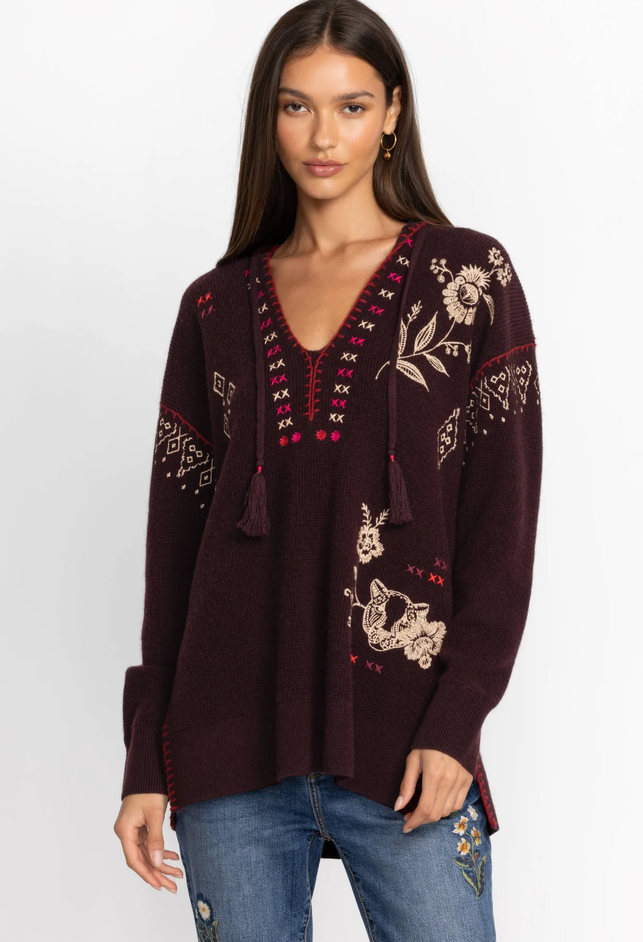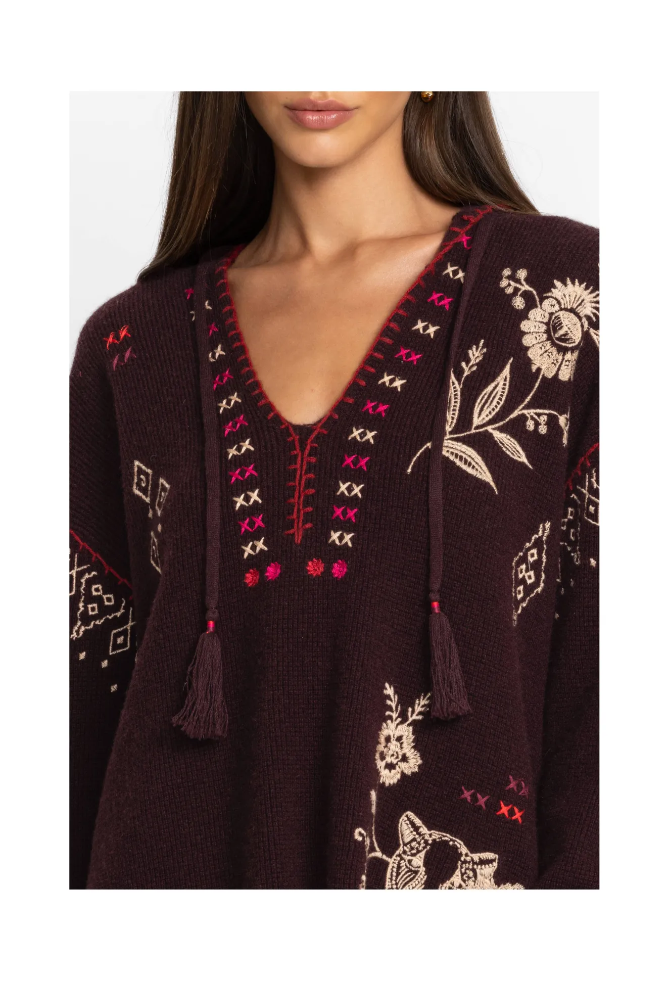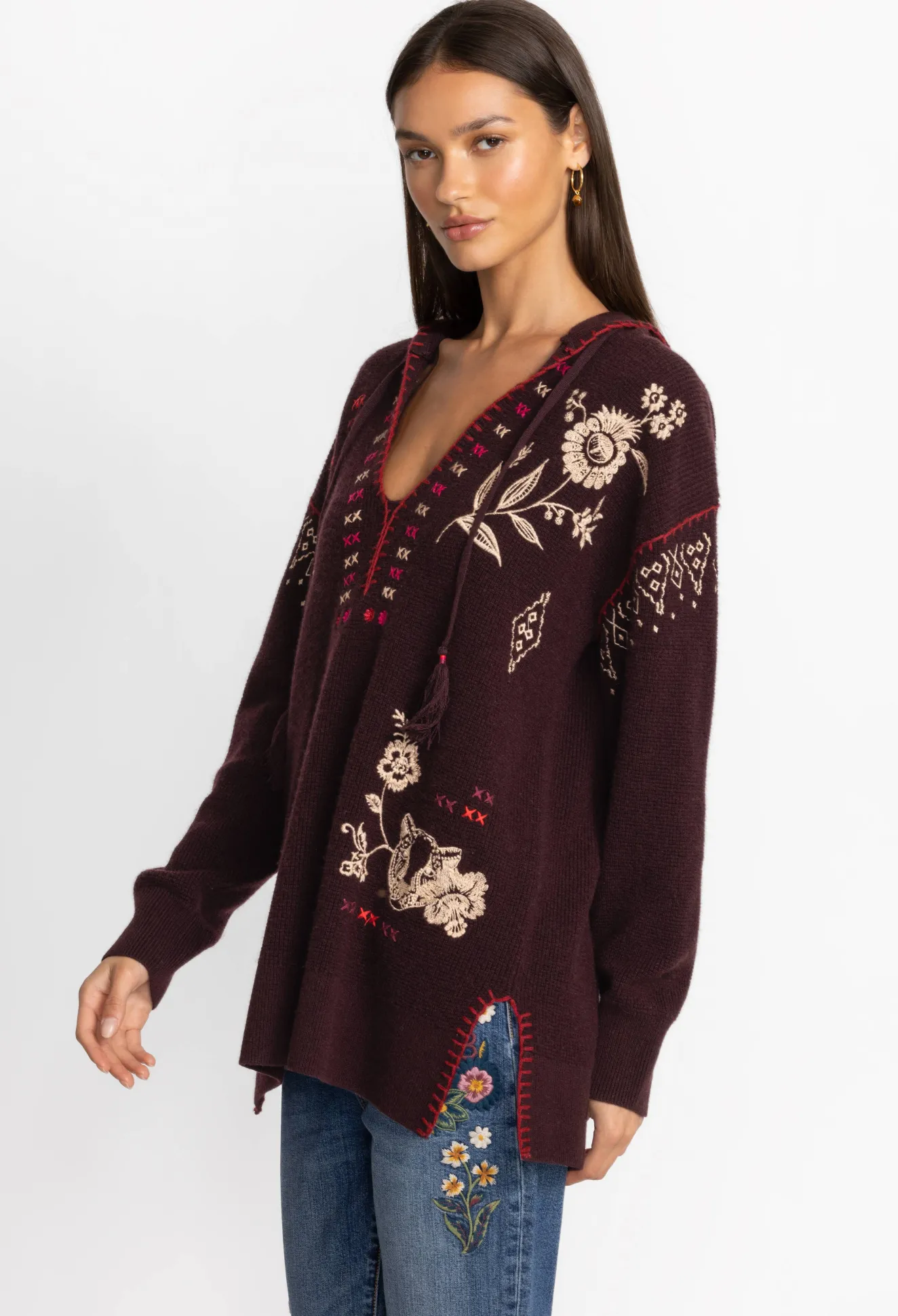 Spun From A Sumptuous Wool Cashmere Blend, The Ivery Baja Pullover Is Reminiscent Of Cozy, Cold-Weather Days Nestled In Front Of The Fire. This Pullover Boasts A V-Neck, A Hood, Long Sleeves, Ribbed Edges, And An Intricate Placement Embroidery Consisting Of Fragrant Blooms. Style This Pullover With A Long Sleeve Tee And Pair With Jeans For A Laid-Back Wear-Anywhere Look.