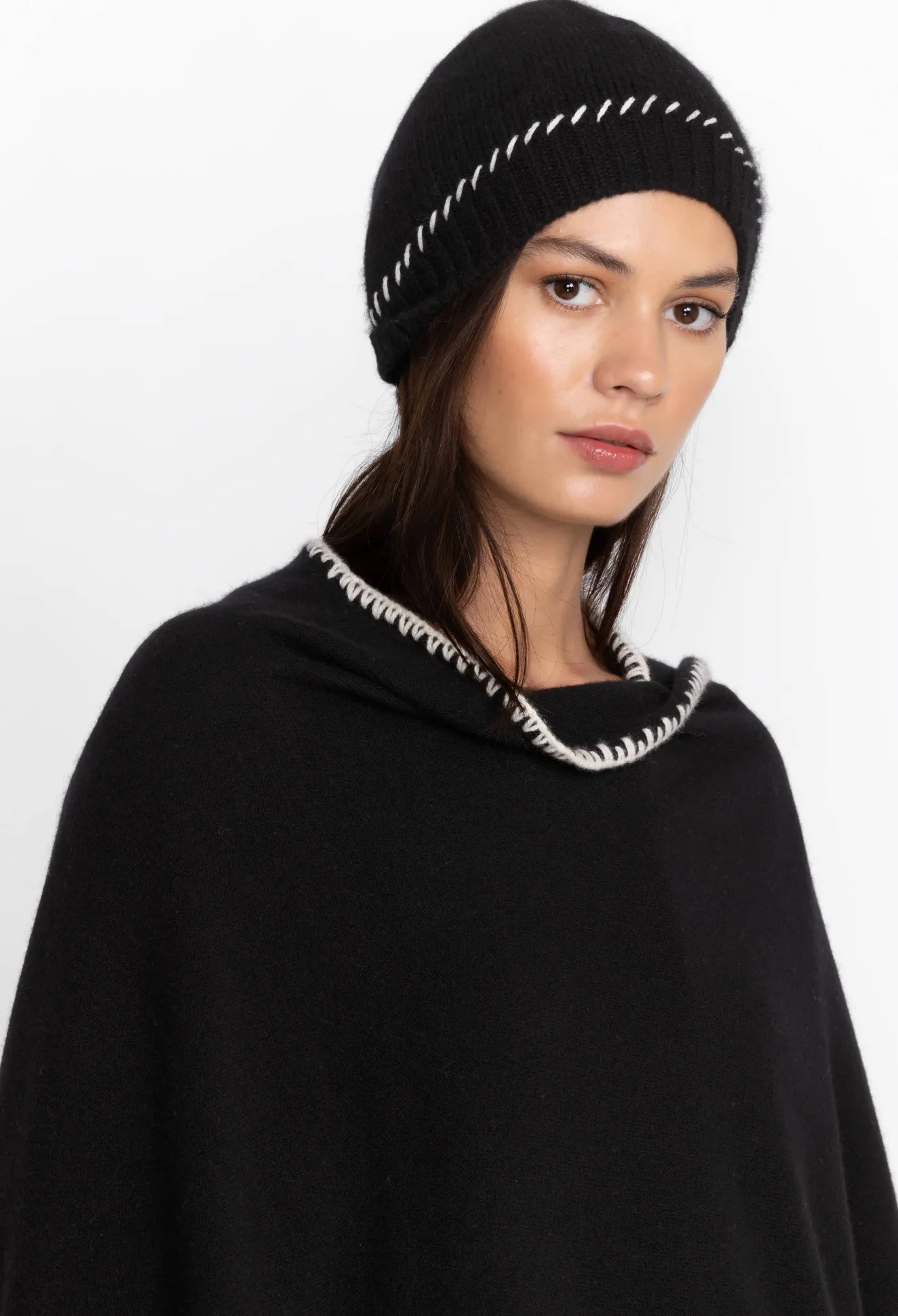 Underscored With A ’90S Vibe, The Whipstitch Beanie Adds A Fashion-Forward Spin To Cold-Weather Practicality. Spun From Soft Cashmere, This Beanie Is Imagined In Black And Accented With Contrast White Whipstitching For A Bold Finish. Wear This Beanie With Everything From Leisurewear To Laid-Back Office Looks.