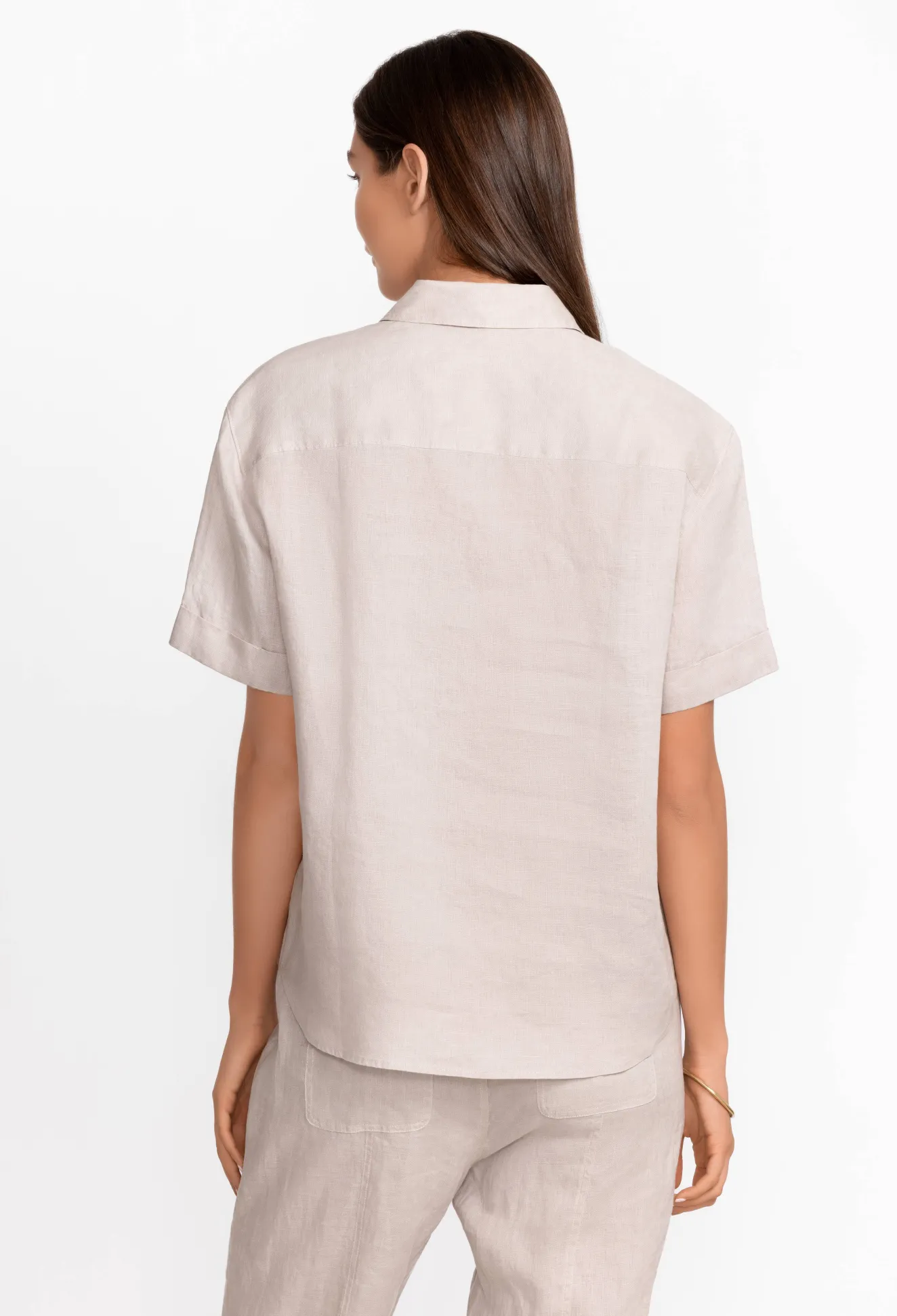 Ideal For Even The Warmest Days, The Linen Cuff Sleeve Camp Shirt Sets The Standard For Comfort And Style. Crafted From Elegant Linen, This Shirt Features A Curved Hemline And Cuffed Sleeve That Adds An Effortless Finish. Layer Over A Cotton Tank And Pair With A Denim Skirt Or Palazzo Pants.
