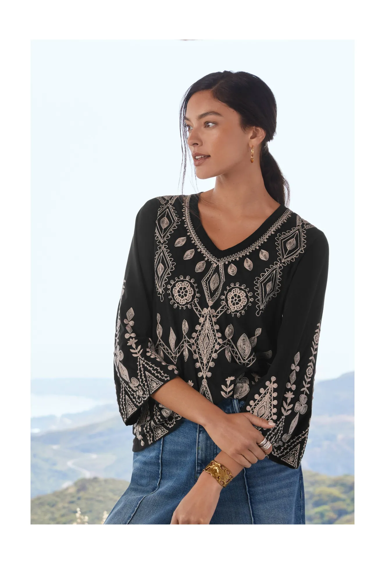 Women Johnny Was Liona V-Neck Kimono Sleeve Tee
