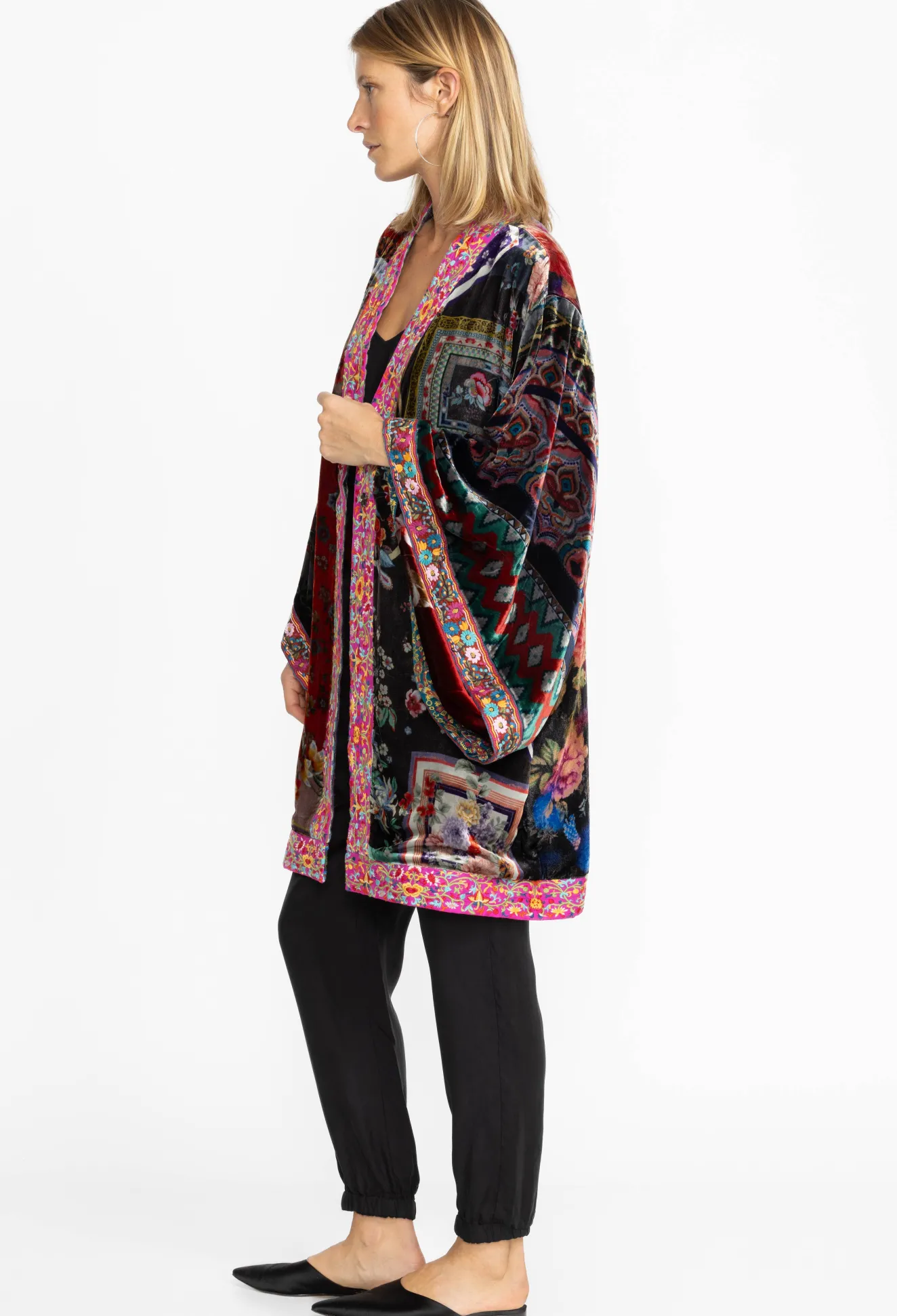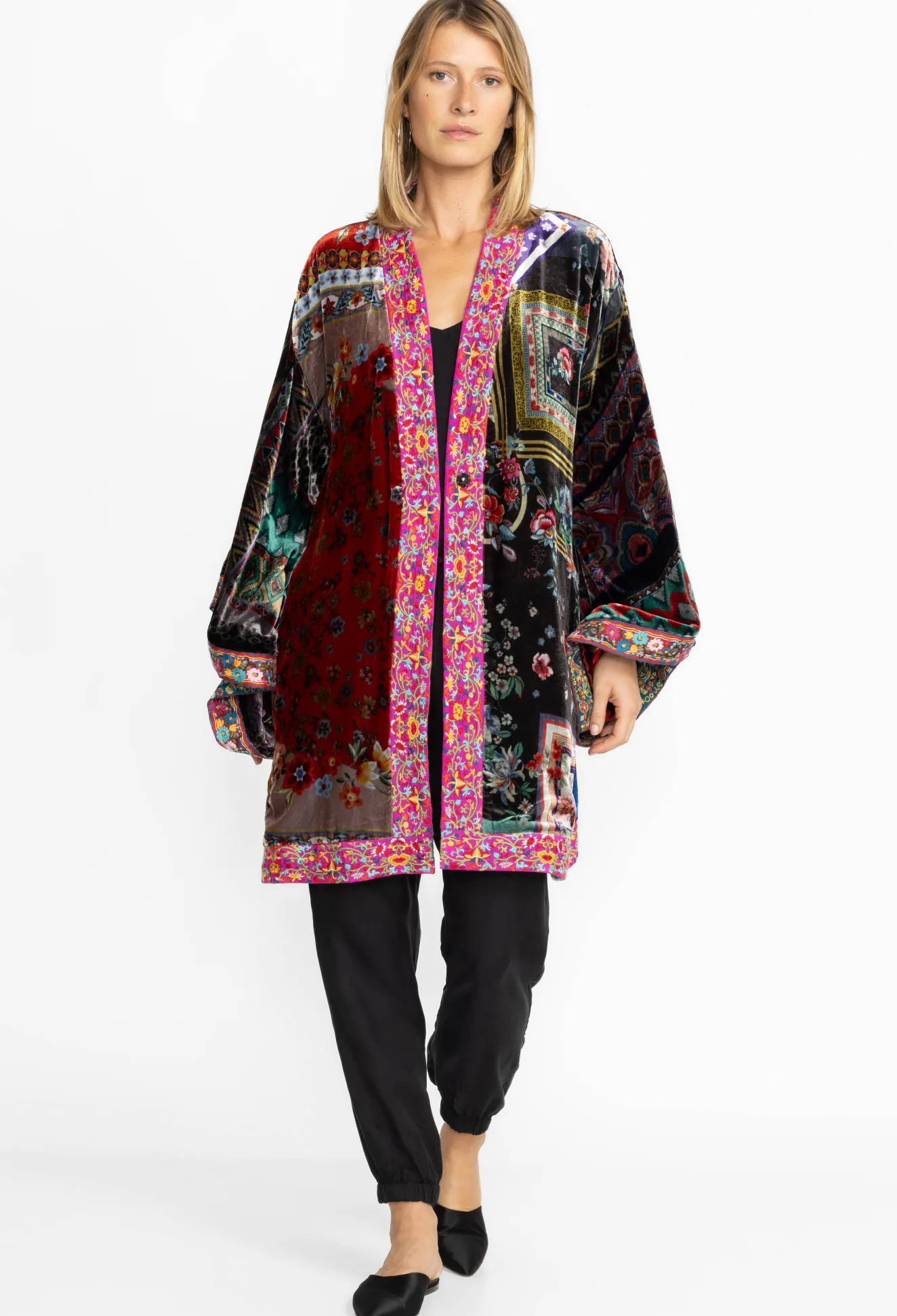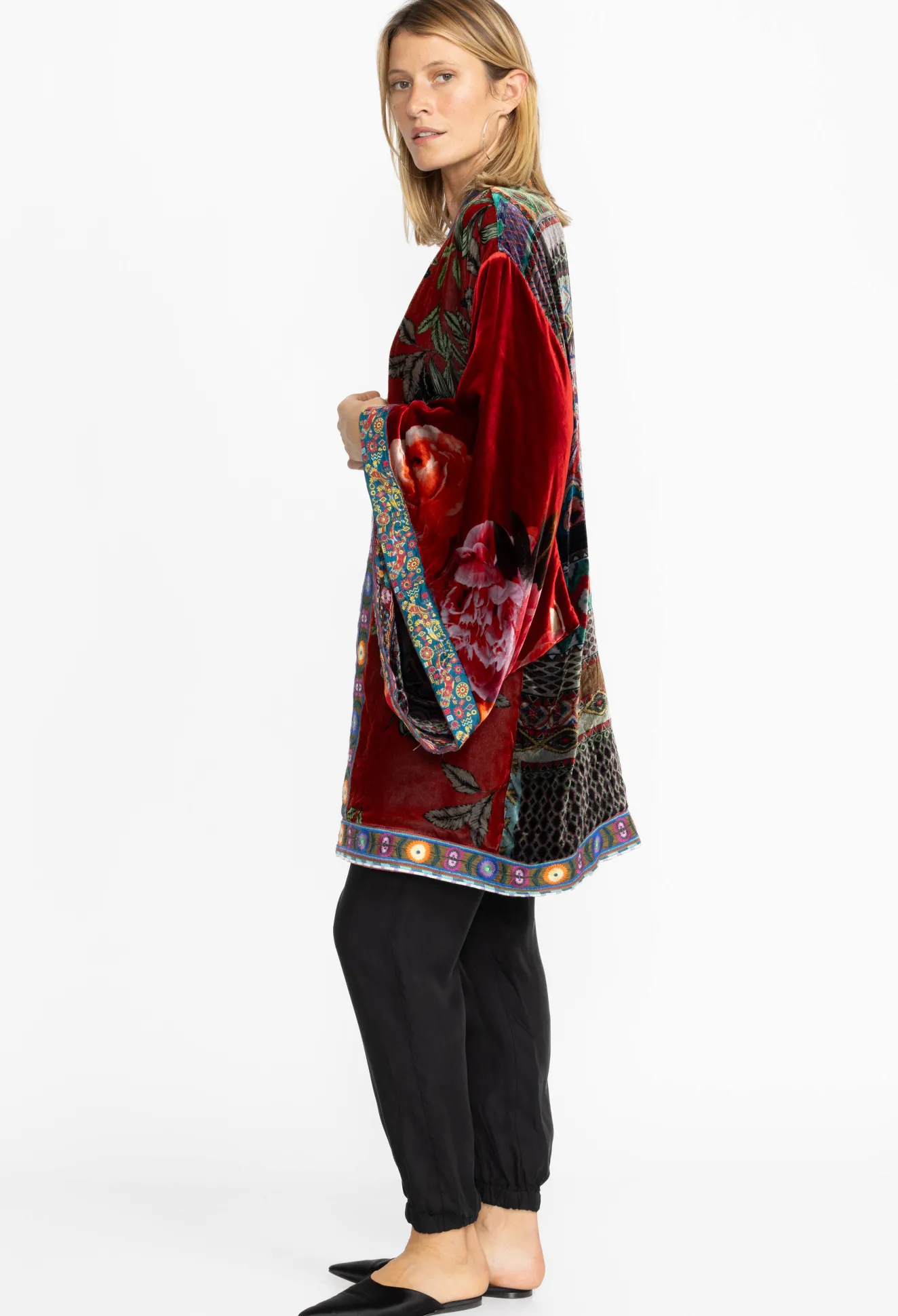Women Johnny Was Midi One Of A Kind Velvet Kimono- Red