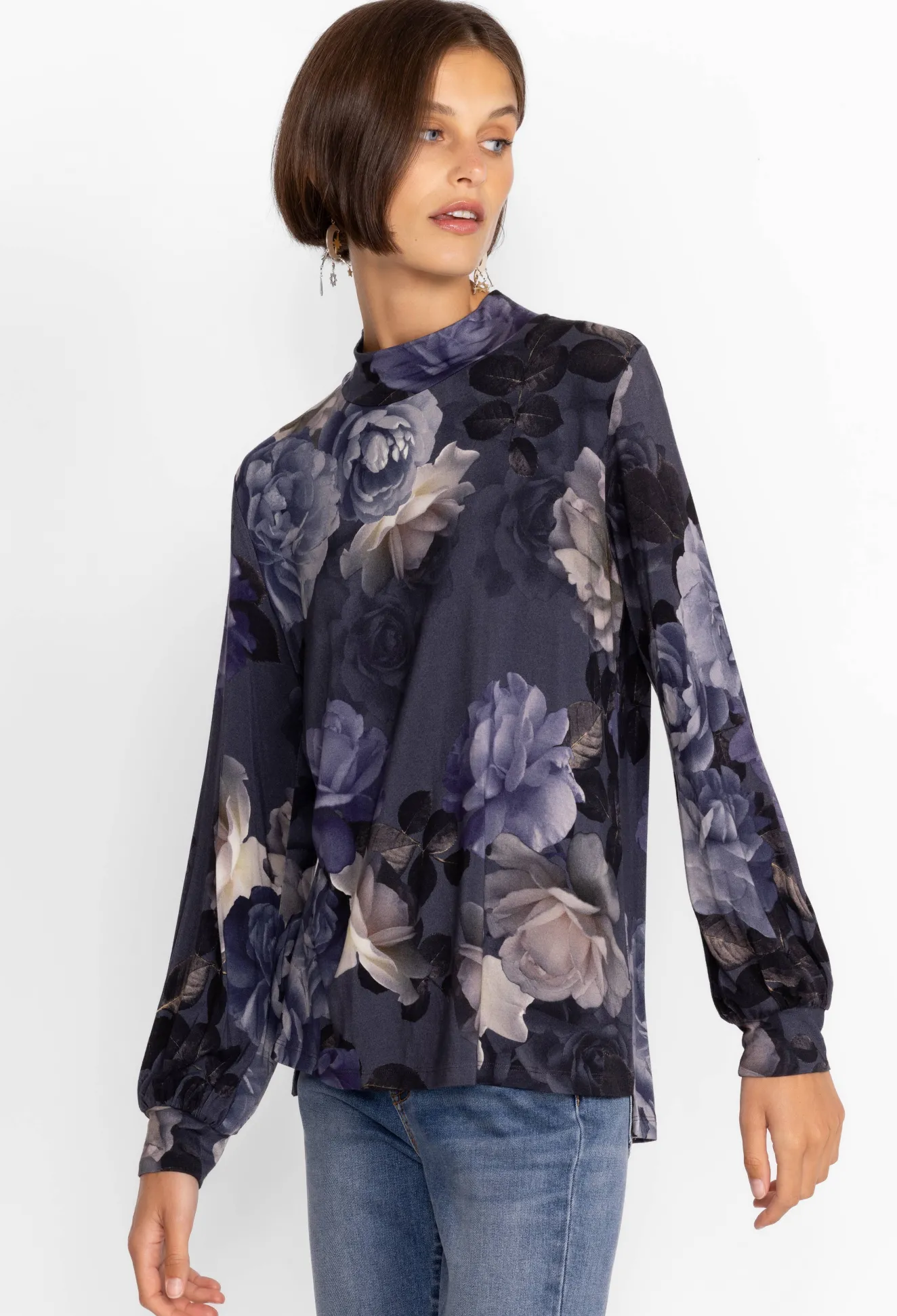 Women Johnny Was Puff Sleeve Mock Neck