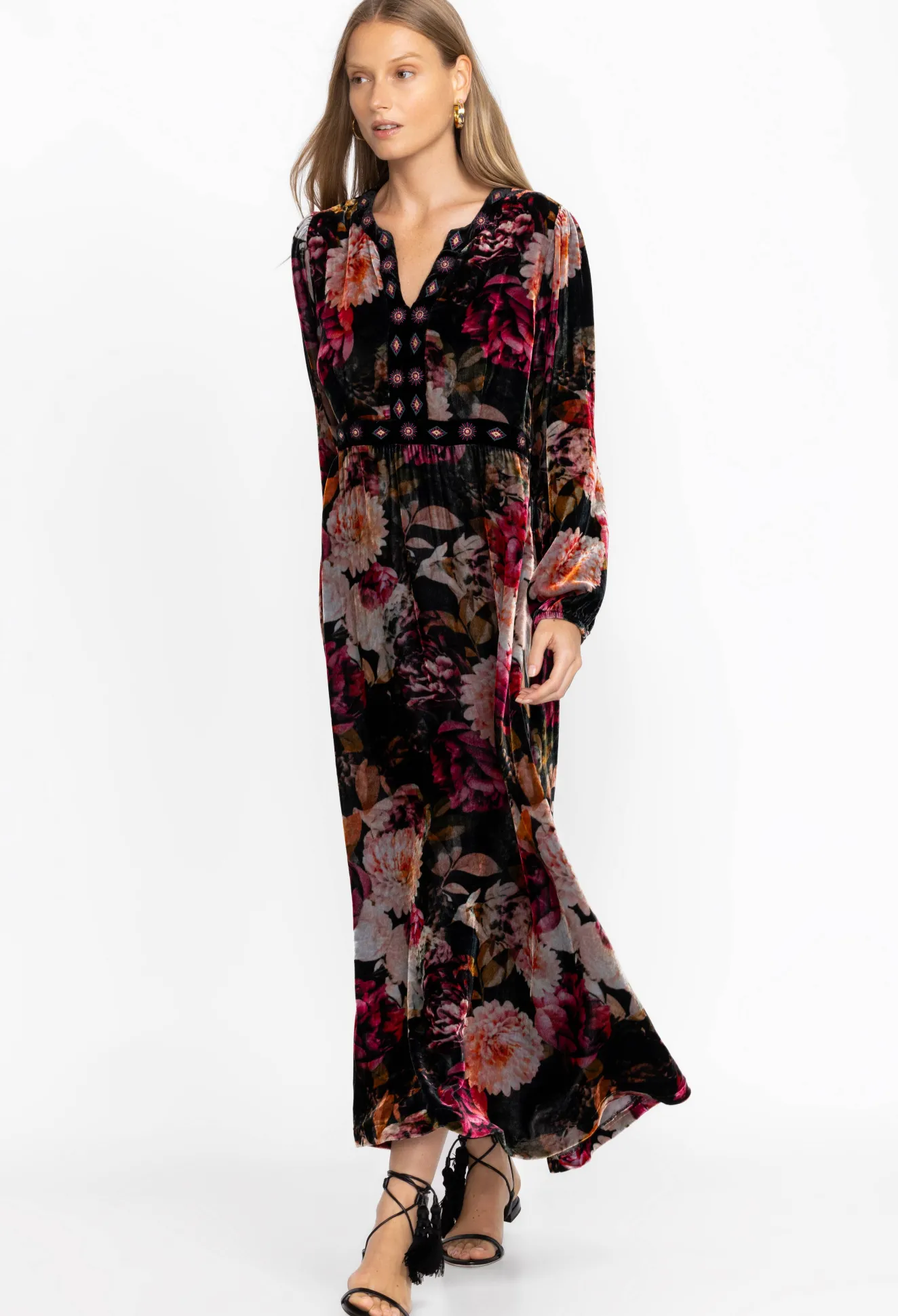 Adding A Distinctly Feminine Flair, The Rosa Velvet Front Notch Dress Is Saturated With Floral Bouquets In Full Bloom. F…