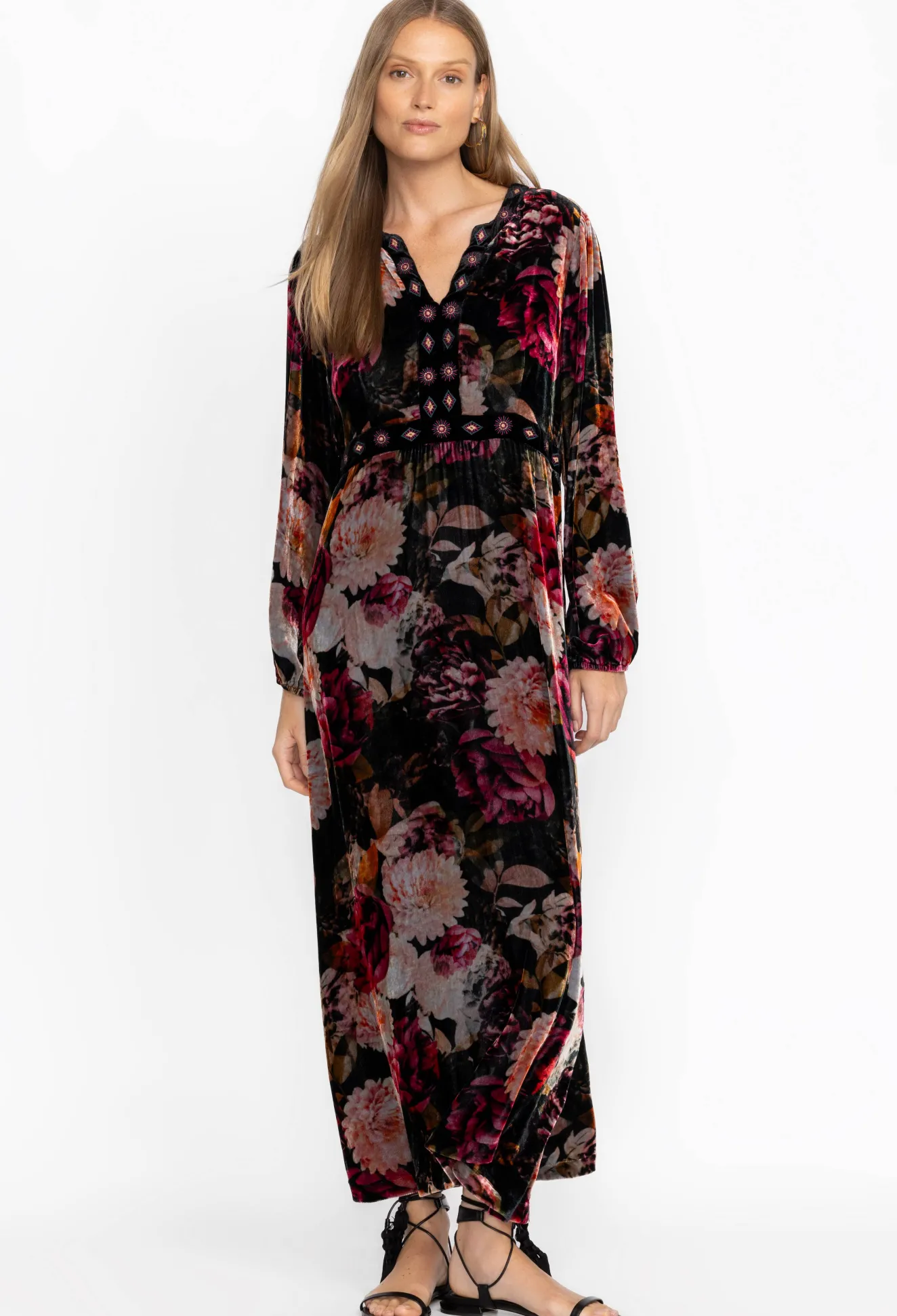 Women Johnny Was Rosa Velvet Front Notch Dress