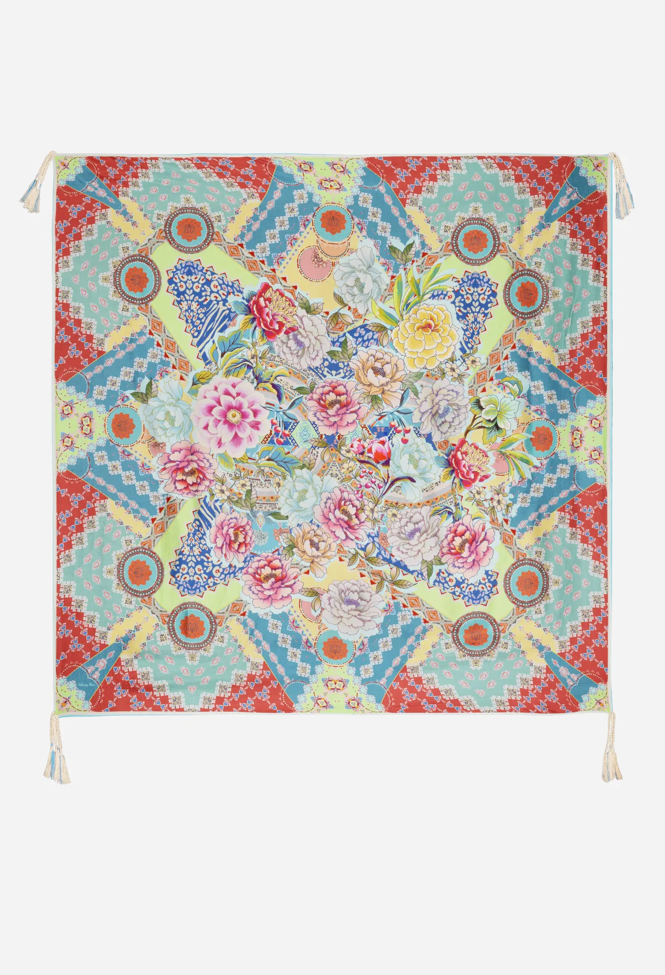 A Stylish Accessory For Brighter Weather, The Prisma Scarf Takes Inspiration From The Striking Symmetrical Patterns Of A Kaleidoscope. This Scarf Is Spun From Lustrous Silk In A Lively Color Scheme And Features A Mesmerizing, Patterned Print Complete With Antique Flowers Concentrated At The Center. Tie This Scarf Around The Neck Or Attach To A Handbag For A Decorative Finishing Touch.