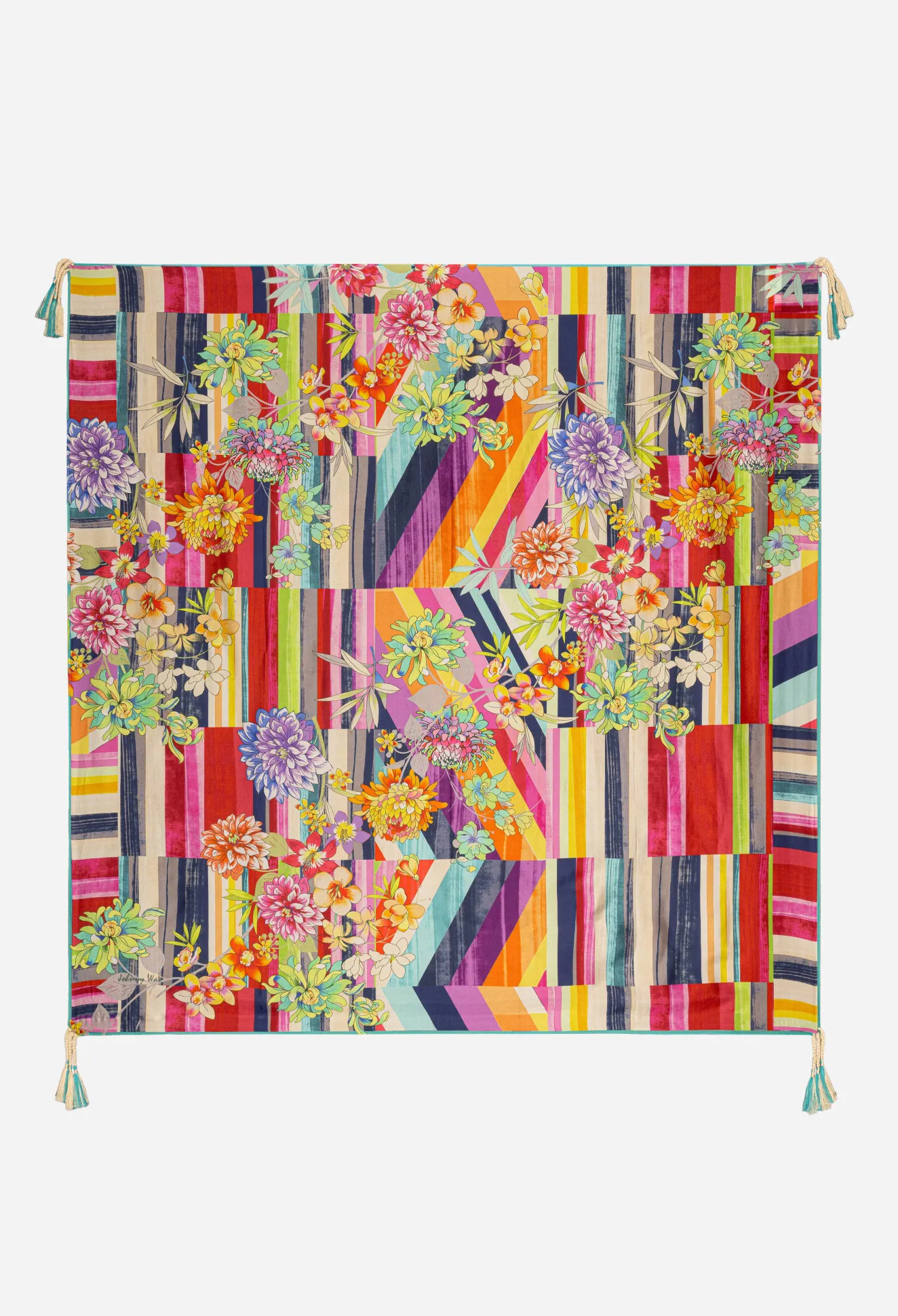 Bold Geometric Patterns Complemented By Soft Floral Flourishes Make The Summer Stripe Scarf A Timeless, Romantic Piece T…