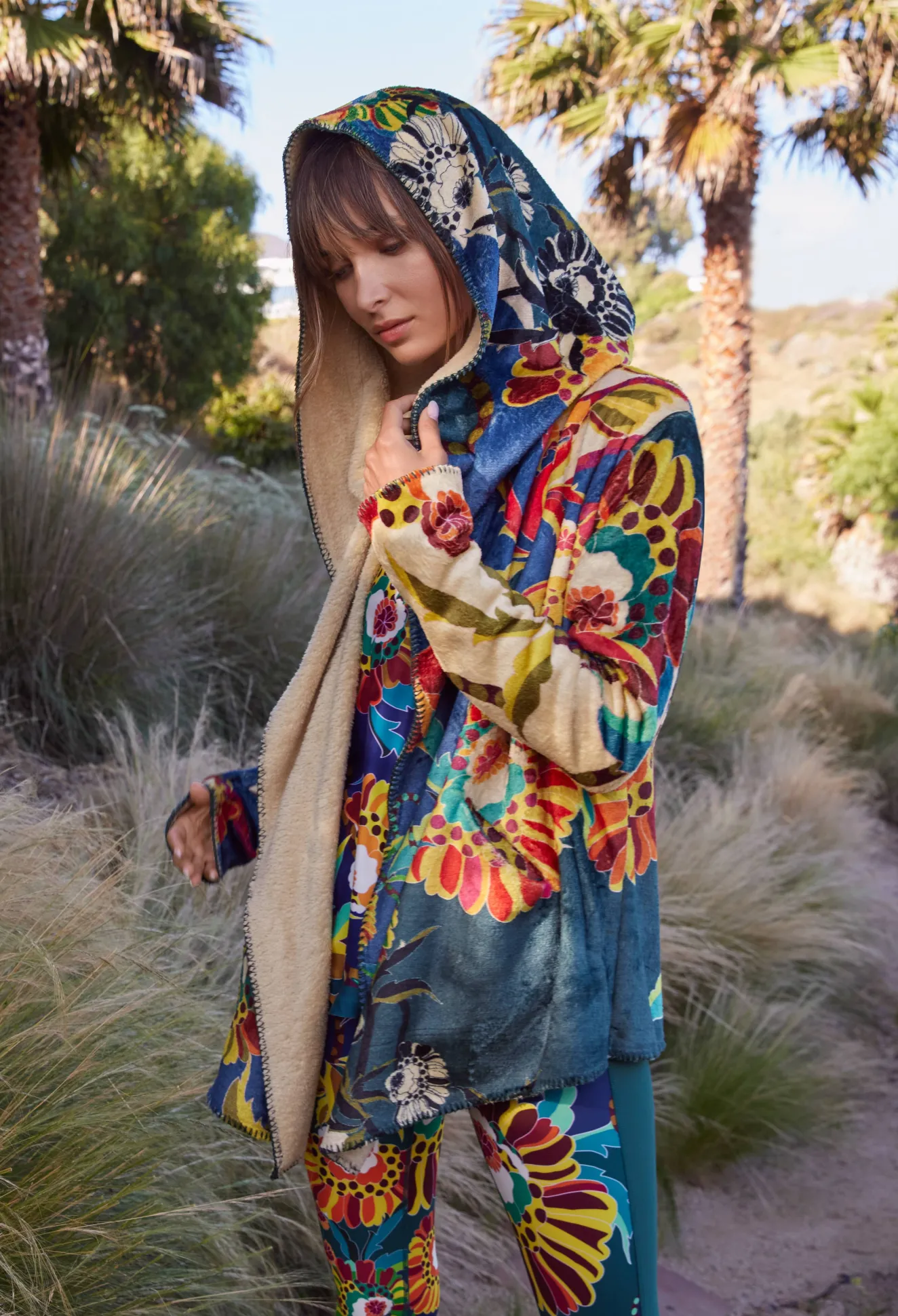 Playful With Practical Features, The Kimbra Sherpa Jacket Adds A Shot Of Color To Your Cold-Weather Repertoire. Designed From A Soft Sherpa Fabric, This Jacket Features A Hood, Front Pockets, Long Sleeves, A Longer Hem At The Front, And An Eclectic Mix Of Floral And Polka Dot Patterns. Keep This Jacket As The Main Focus By Pairing With Simple Separates.