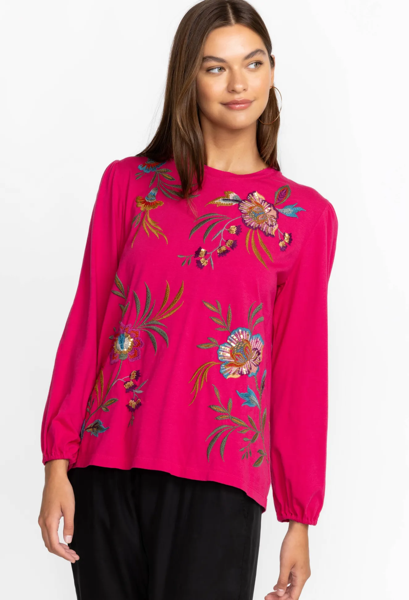 Women Johnny Was Sidonia Bishop Sleeve Sequin Tee