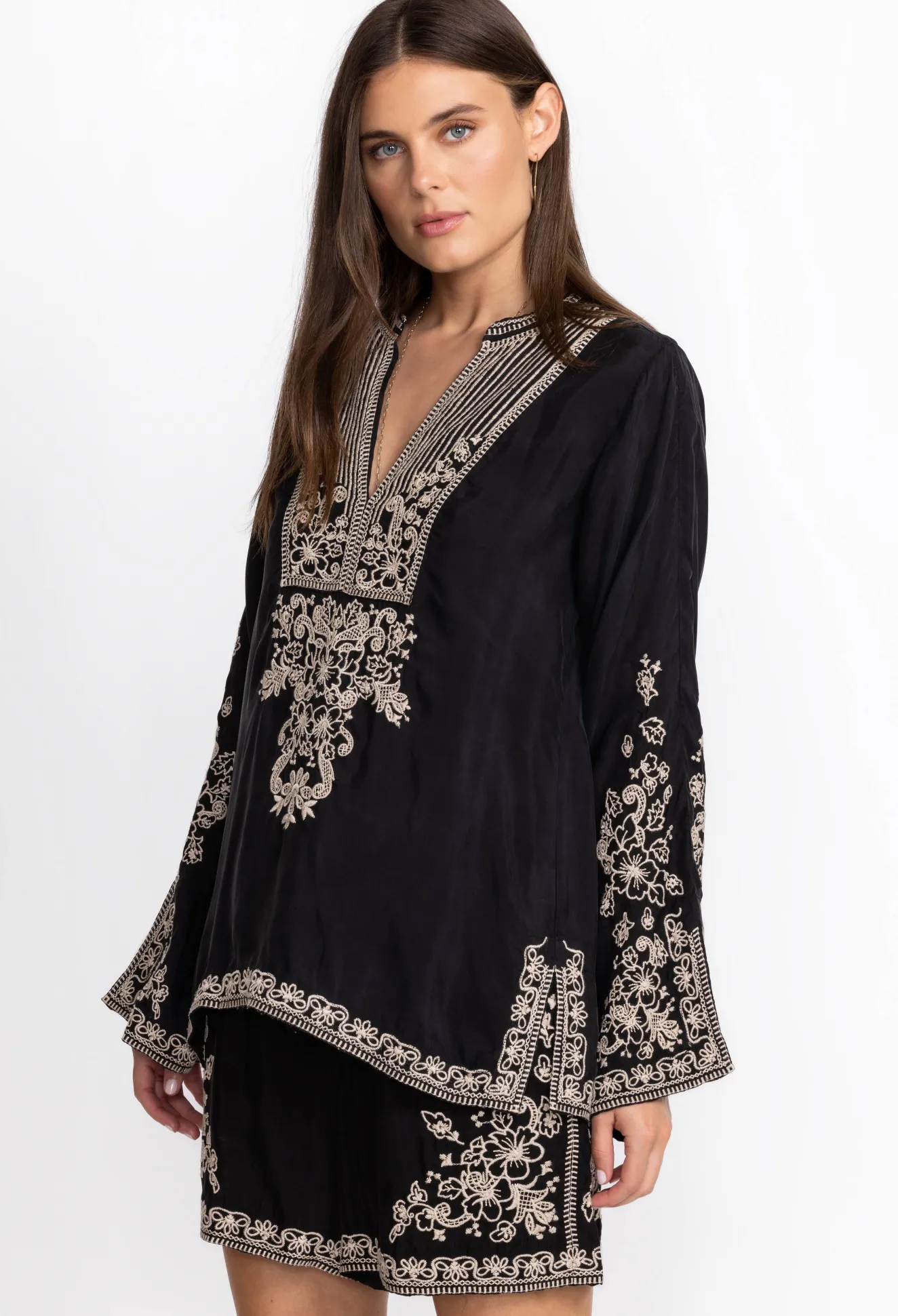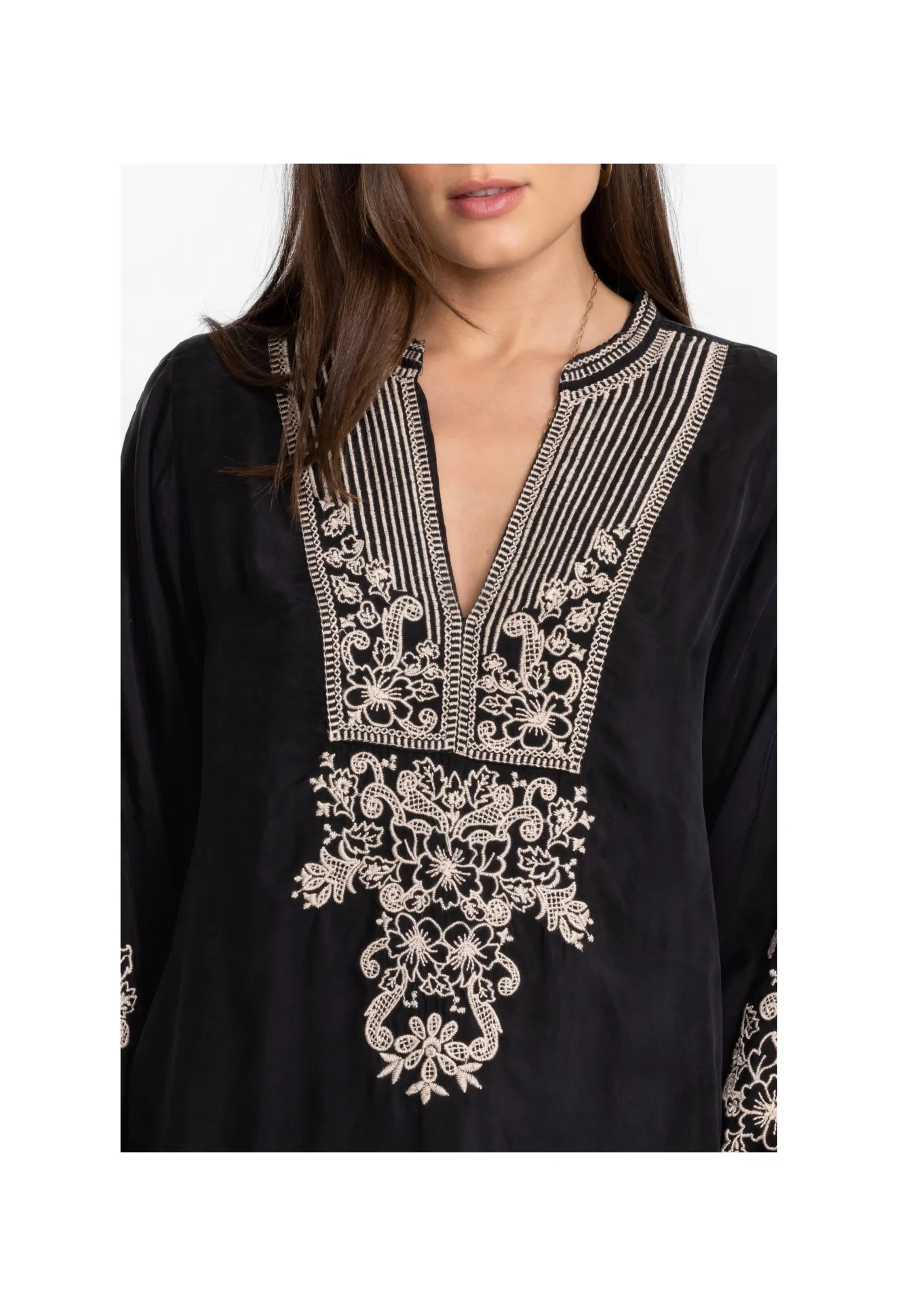 Underscored With A Subtle Charm, The Tempest Blouse Puts A Statement Spin On A Simple Silhouette. This Blouse Is Made From A Light Breathable Fabric And Boasts A Collar With A V-Neck, Long Sleeves, And An Intricate Placement Embroidery With Detailed Motifs. Complete The Look With Jeans And Flats For A Wear-Anywhere Daytime Ensemble.