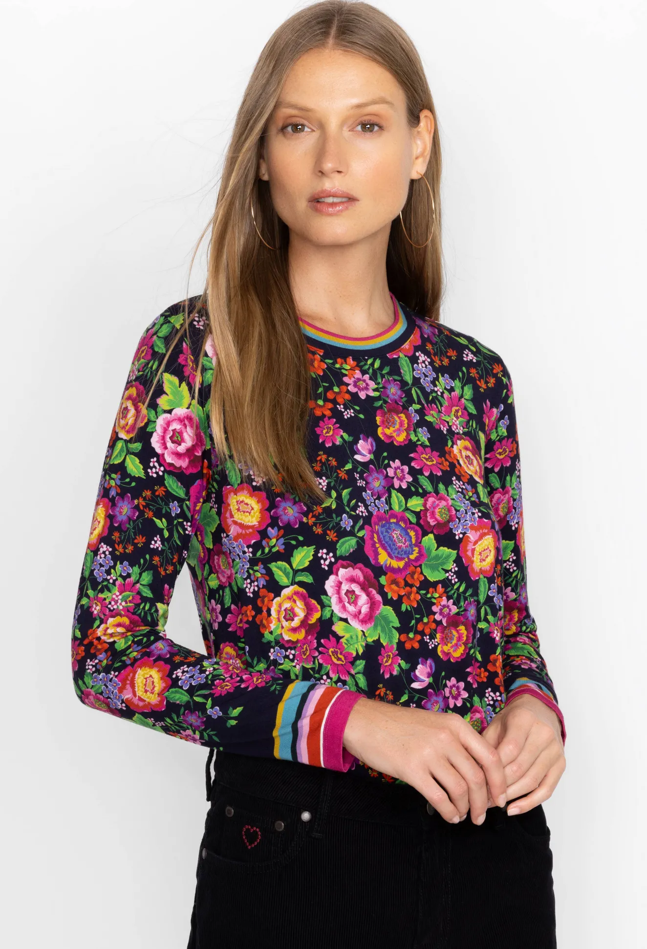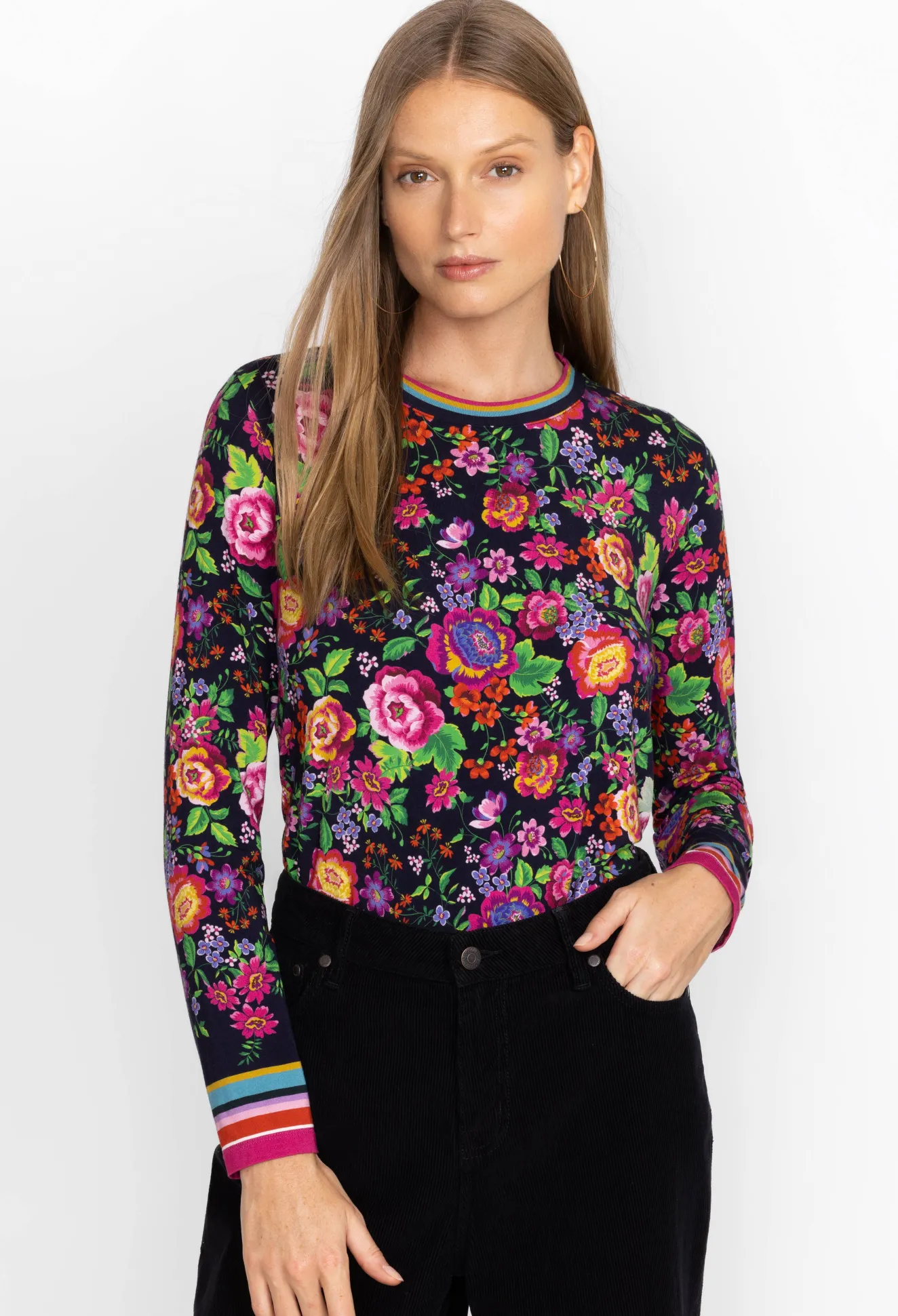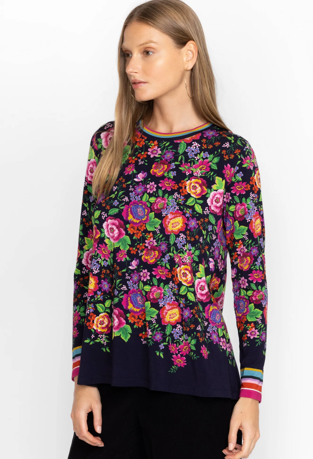 Women Johnny Was The Janie Favorite Long Sleeve Crew Neck Swing Tee