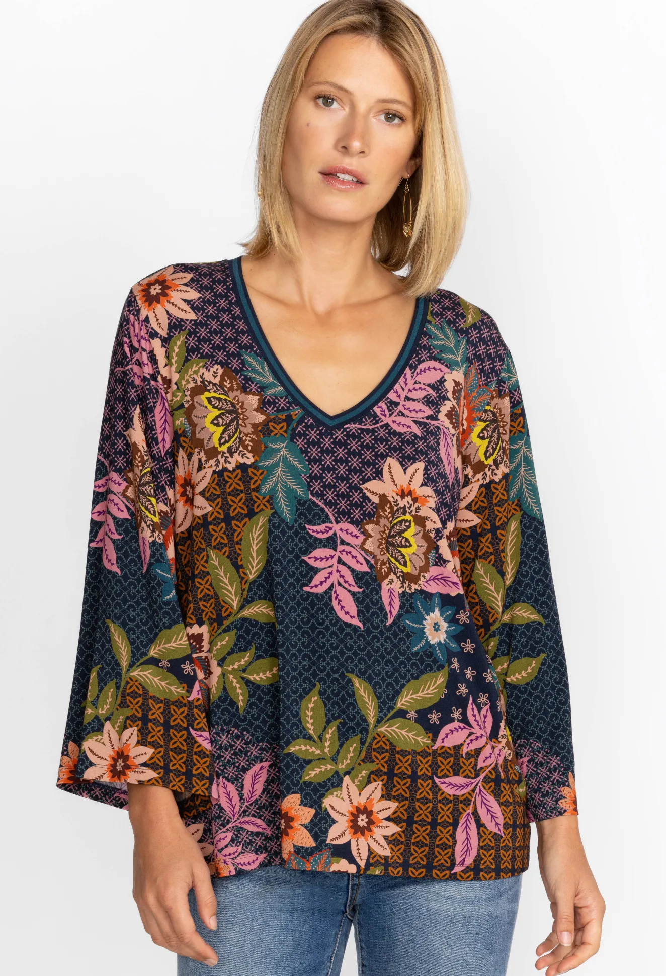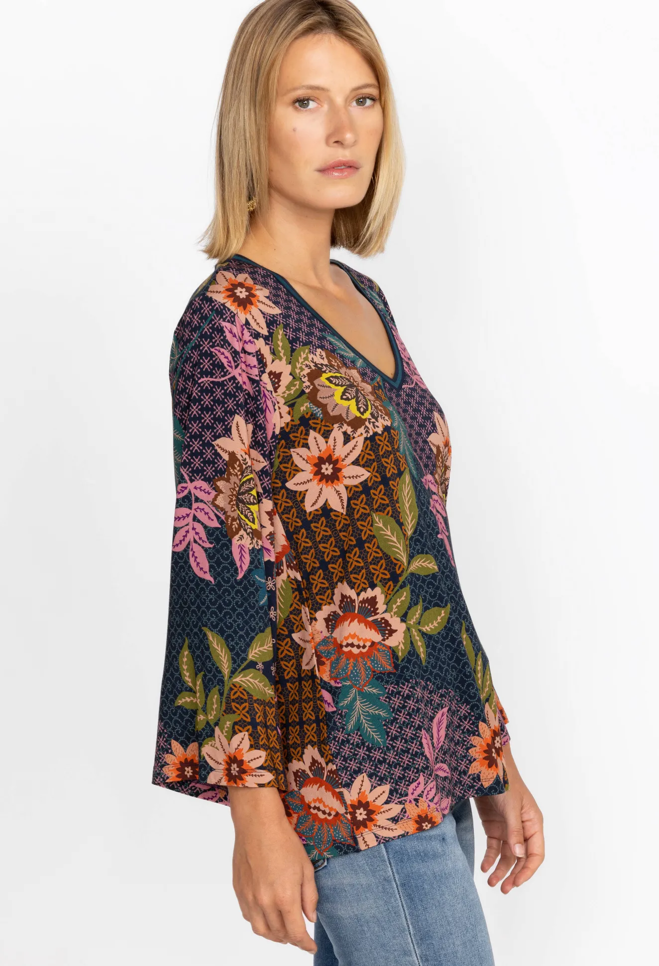 Women Johnny Was V-Neck Kimono Sleeve Tee