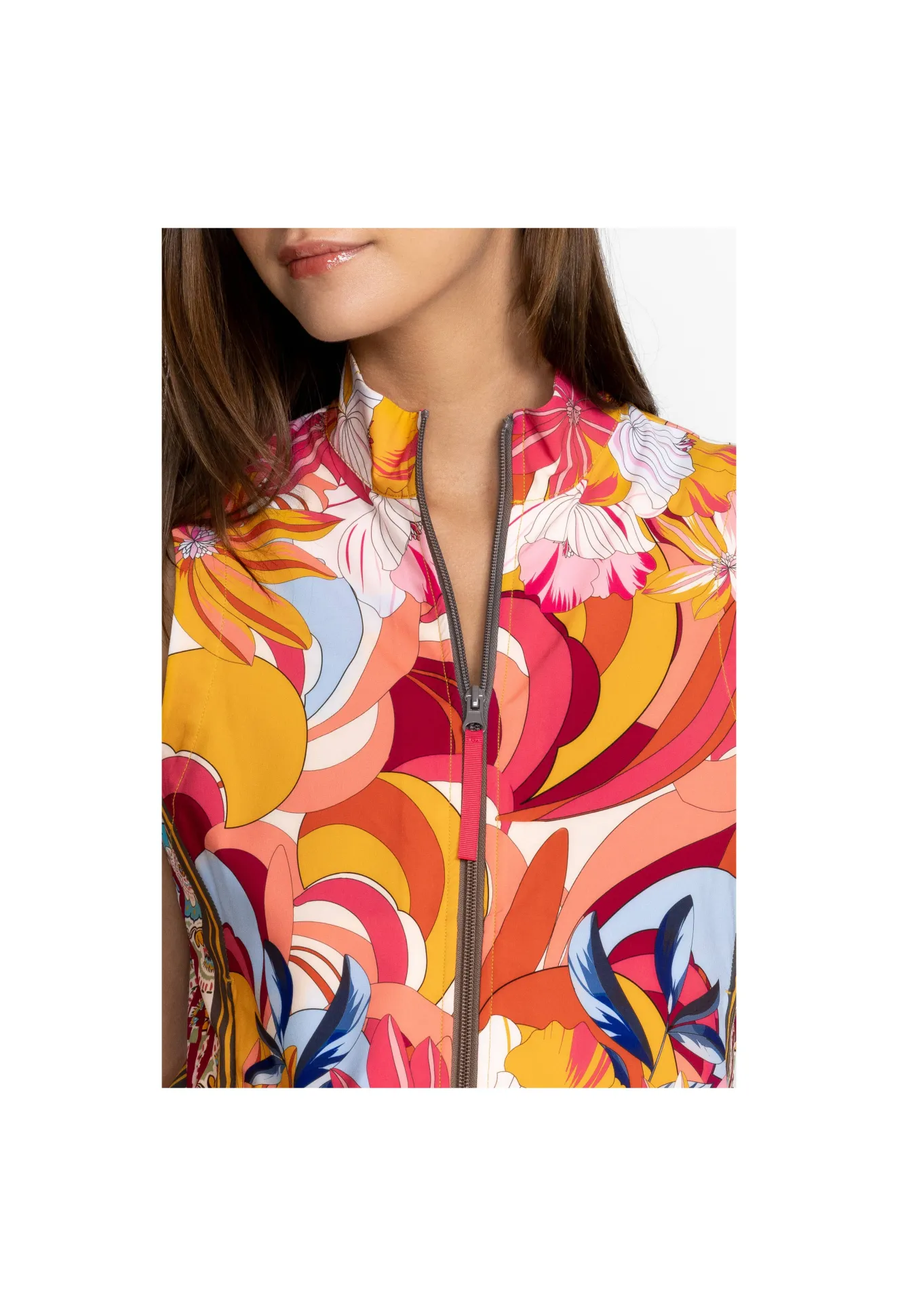 Characterized By Rich Colors, The Rachel May Zip Front Vest Redefines An Iconic 90’s Sports Design With Abstract Flowers…