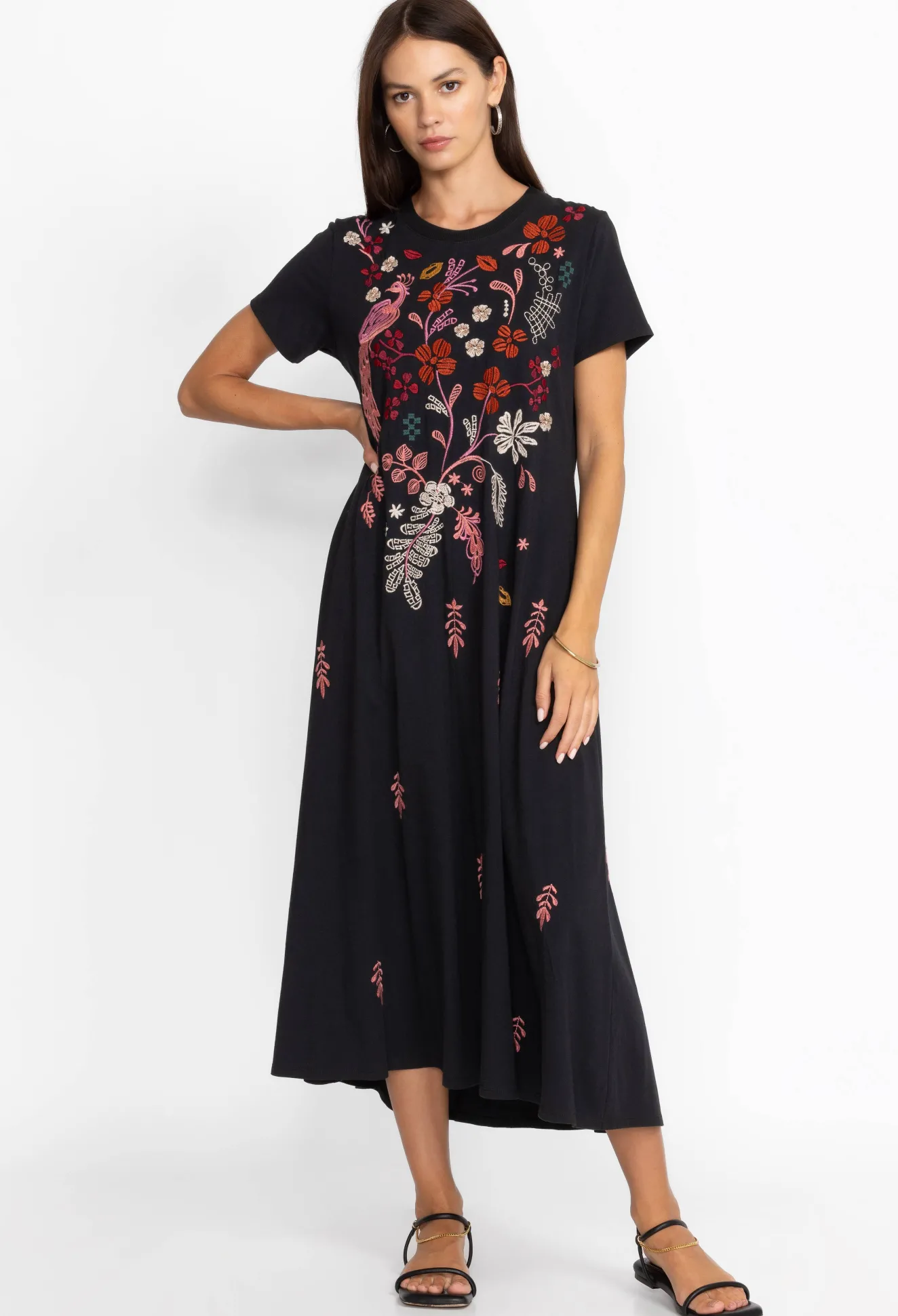 Imagined In Jet Black, The Zuzu Knit T-Shirt Dress Elevates A Versatile Cut With Joyful Blooms. Knitted From Pure Cotton…