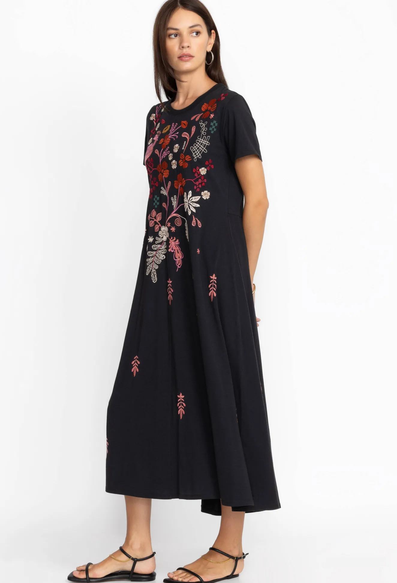 Imagined In Jet Black, The Zuzu Knit T-Shirt Dress Elevates A Versatile Cut With Joyful Blooms. Knitted From Pure Cotton, This Dress Boasts A Round Neck, Short Sleeves, And An Intricate Floral Placement Embroidery In Bright Tones. Modernize The Look With Sneakers Or Opt For A Femme Finish By Pairing With Sandals.